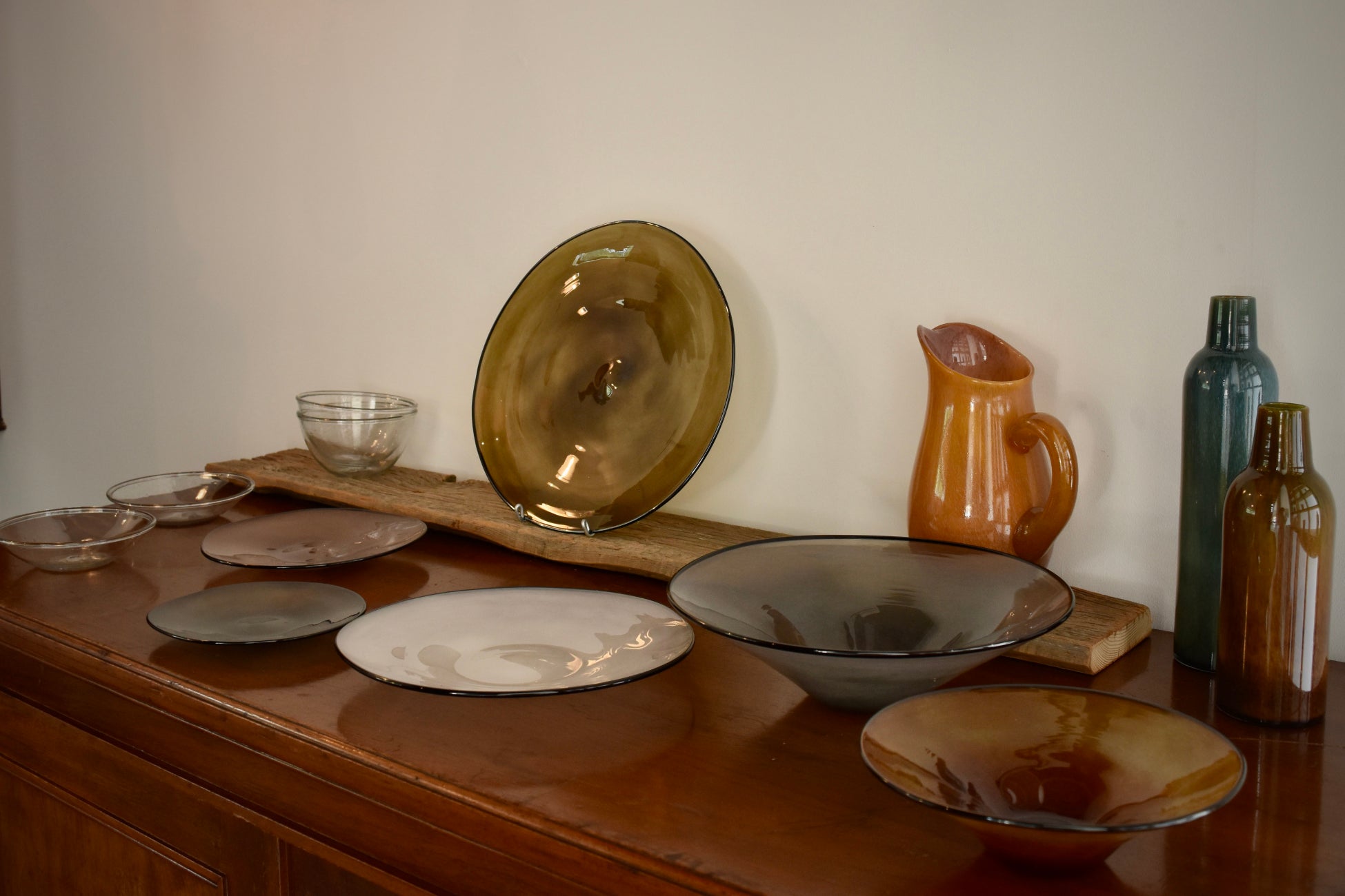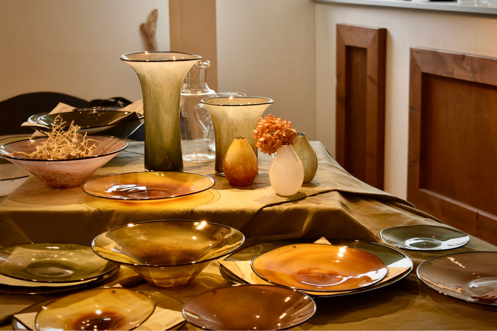 ガラスにグラデーションの色味を織り込んだくすみを帯びた色彩。障子越しの光を柔らかに取り込む和の空間のように、日本の美学にも通ずる優しい透明性を持つfrescoの器をご堪能ください。