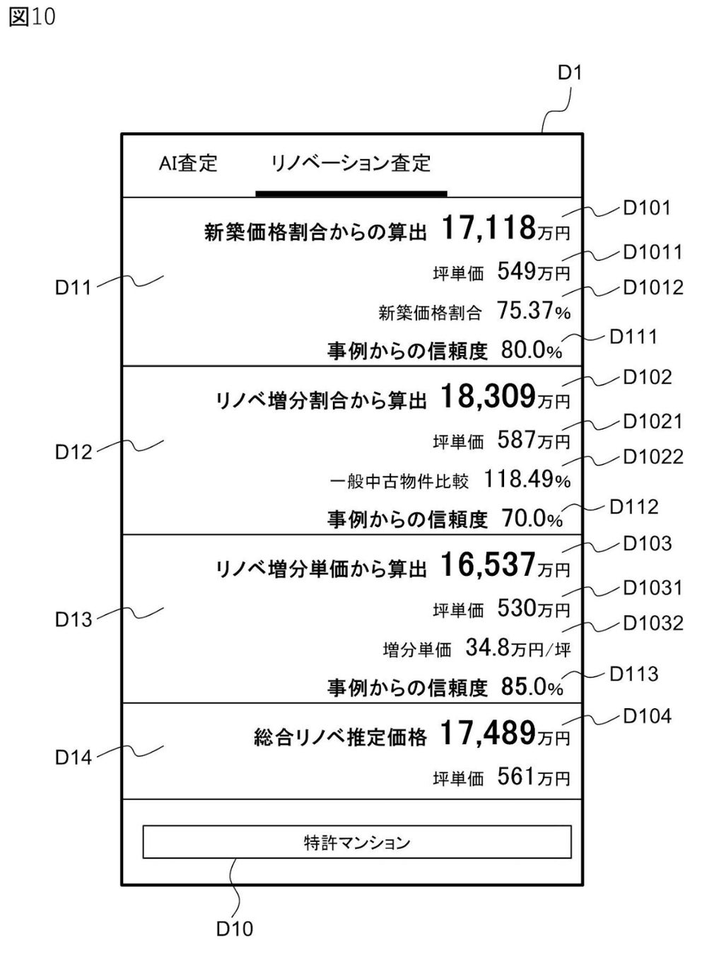 図10は、リノベ価格を実際に提示するリノベーション査定画面(Webページ)例です。