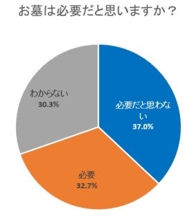 “お墓は必要だと思わない”が一番多く37.0%、“お墓は必要だと思う”が31.7%、“わからない”30.3%という結果となった。