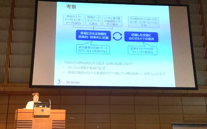 当社の社内シンクタンクであるベネッセ シニア・介護研究所からは、マジ神AIが先行導入されているホームを対象に行っている効果検証の結果について発表しました。