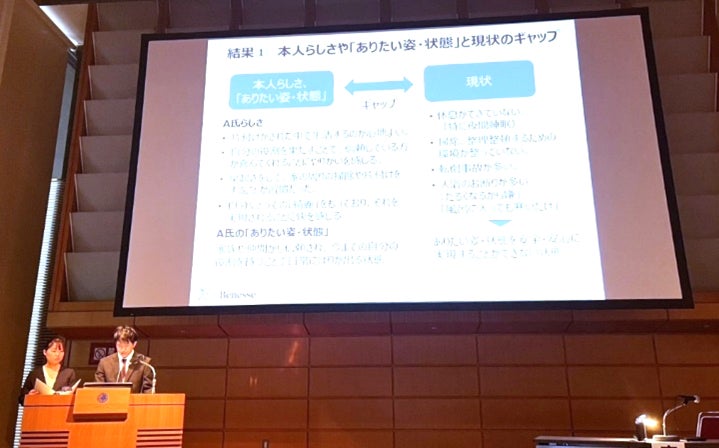 図:日本認知症ケア学会大会での発表の様子(上:ベネッセ シニア・介護研究所、下:まどか秋津)
