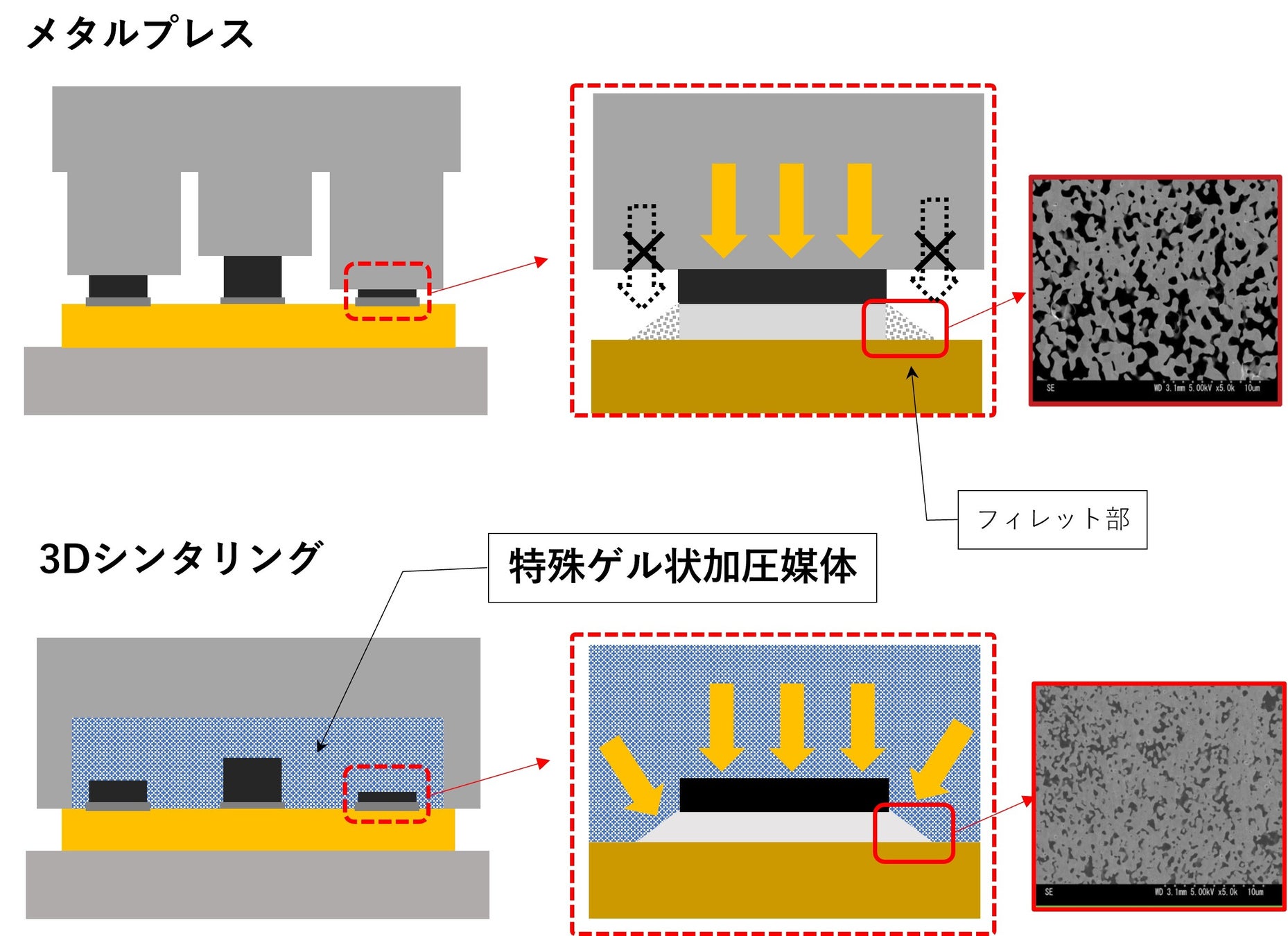 パワー半導体向けシンタリング装置を開発 ~特殊ゲルを用いた立体的なプレスでSiCパワー半導体を均一に一括接合~