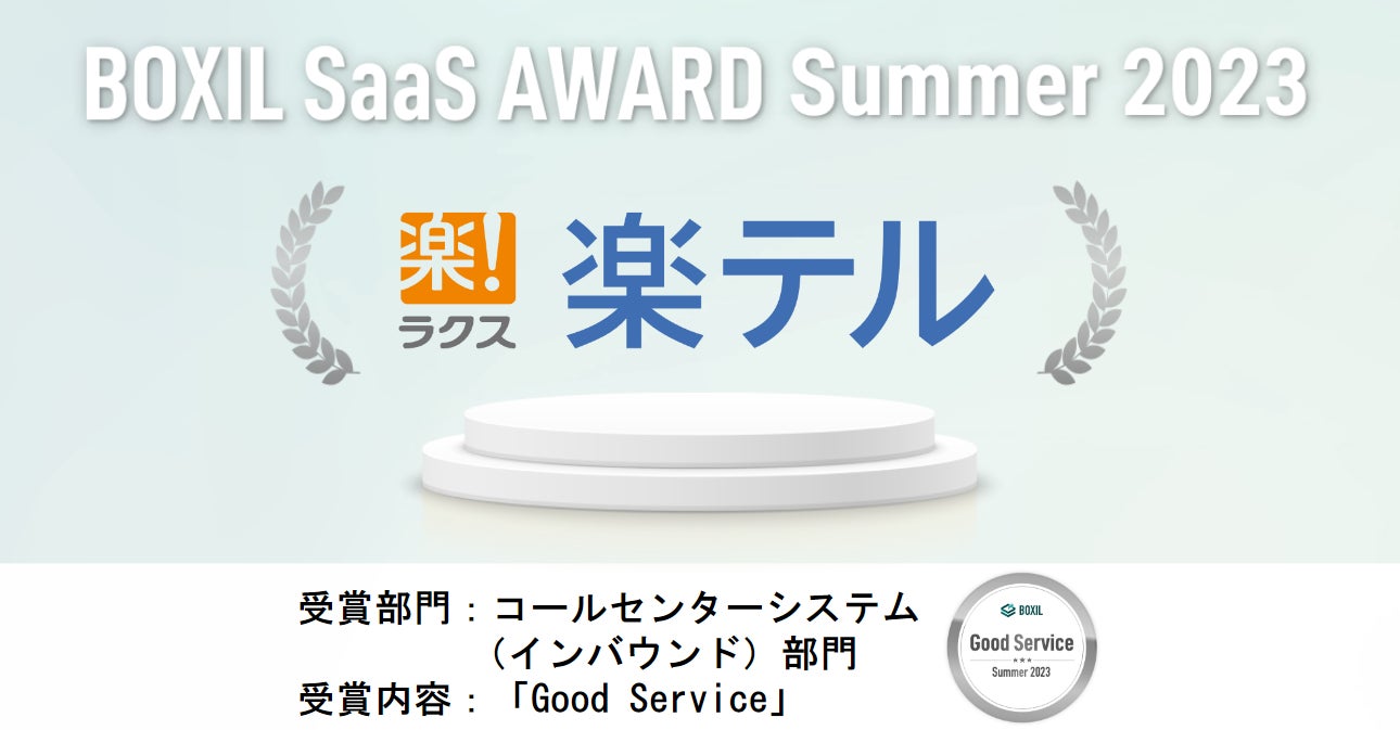 ラクスのコールセンター向けCRMシステム「楽テル」が『BOXIL SaaS AWARD Summer 2023』のコールセンターシステム(インバウンド)部門「Good Service」を受賞