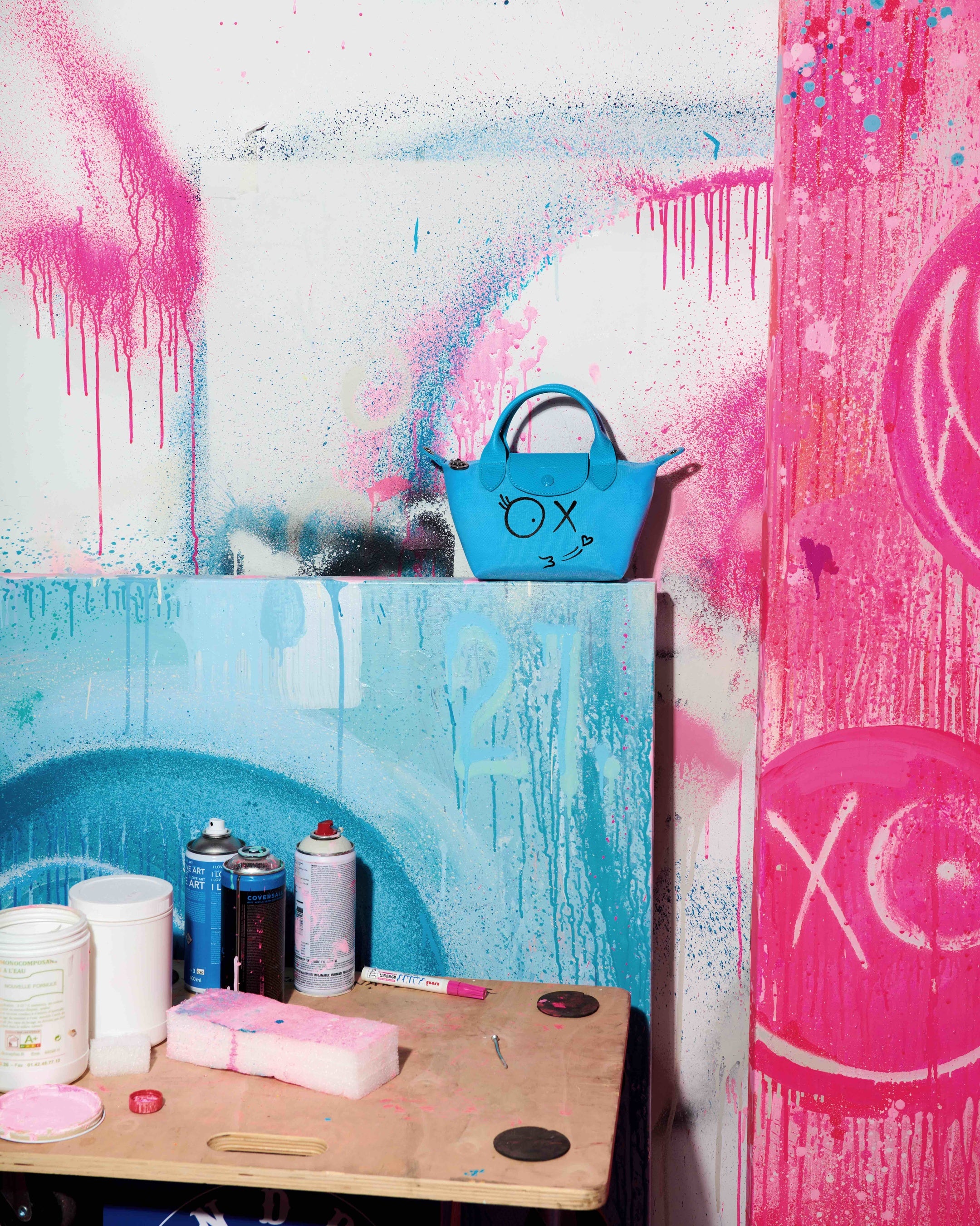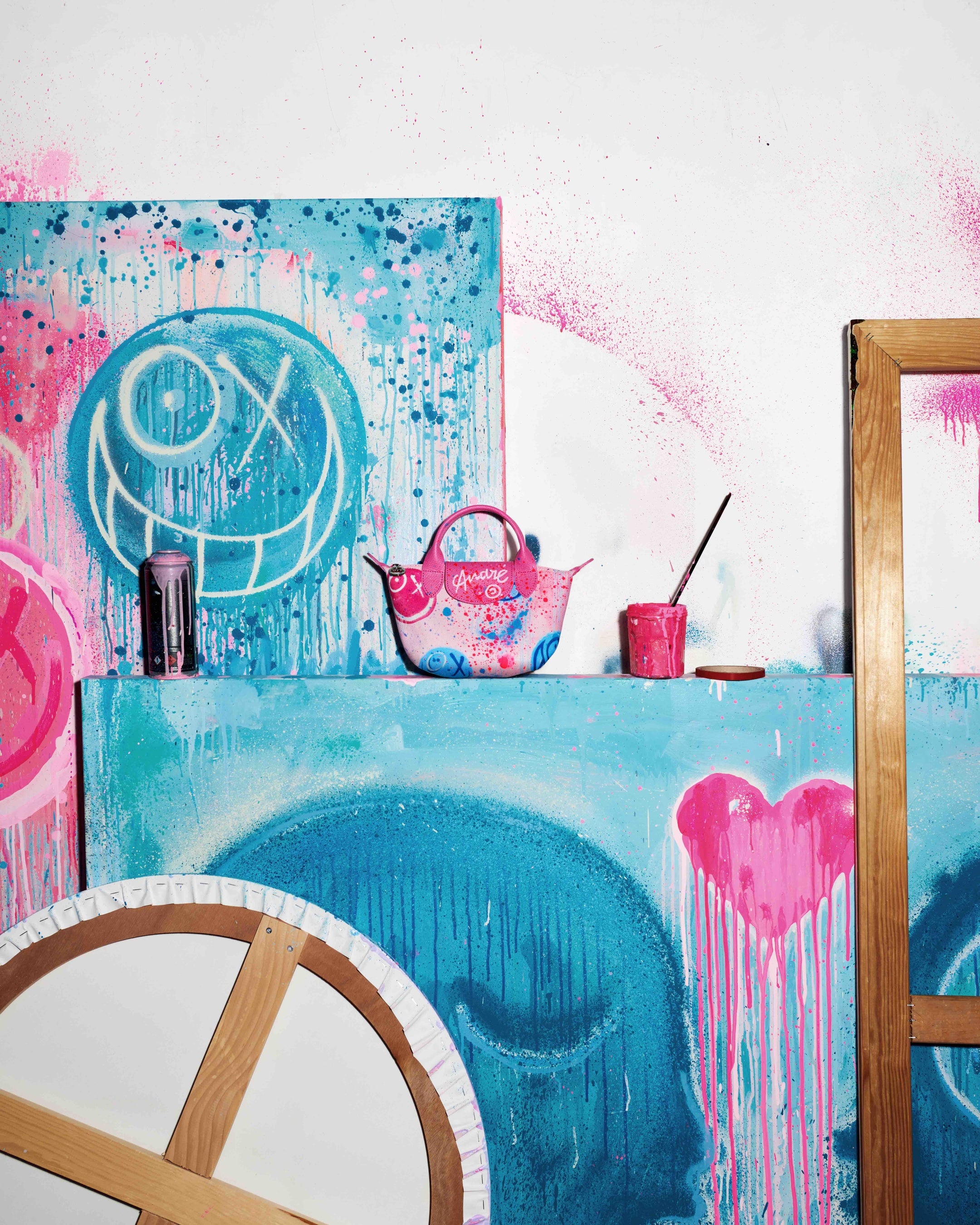さらに、世界で200個限定のアンドレ直筆サイン入りトップハンドルバッグXSもラインナップに加わります。リサイクルポリエステル地を使用したバッグはピンクとブルーの “Mr. A”たちに彩られ、彼自身の手でグラフィティが描かれています。シリアルナンバー入りのオリジナリティ溢れるバッグは、日々のパートナーとして“持ち歩けるアート作品”に昇華されています。