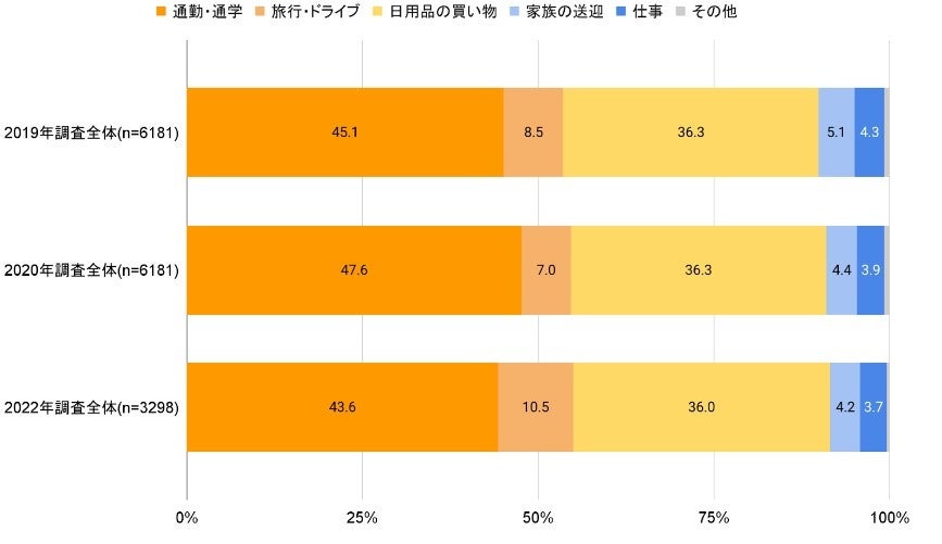 中古車の主な利用用途「旅行・ドライブ」10.5%で、前回調査と比べ上昇