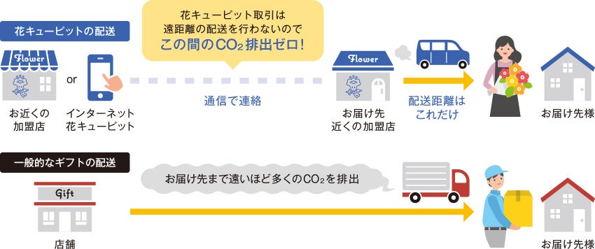 「花キューピット」はお届け先近くのお花屋さんが直接お届けするサービスです。