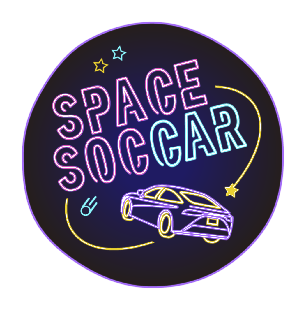 SPACE SOCCAR(以下、スペースサッカー)は、宇宙船に見立てたクルマからの電気をエネルギーとして、椅子に座ってボールを蹴り、惑星に見立てた相手ゴールを狙います。体力差も、年齢差も、電気のチカラで少なくでき、世代間交流を楽しく実現する新しいスポーツです。クルマを活用した新競技であることから、