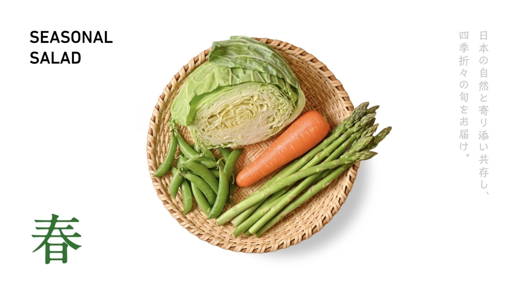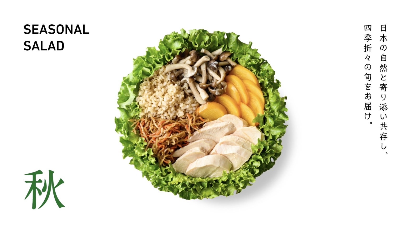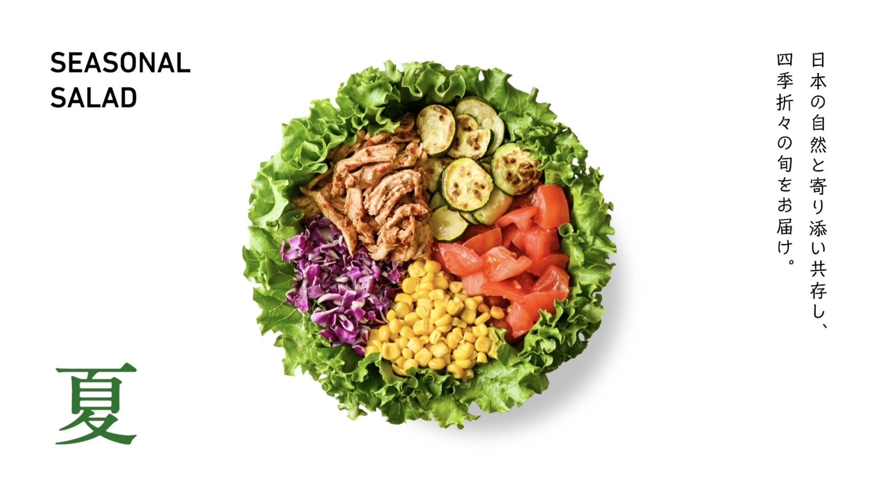 日本には四季があり、それぞれの季節に栄養価が高く美味しい“旬”の野菜があります。私たちは「季節限定サラダ」の生みの親として、日本の生産者の方々と協力しながら季節の野菜を厳選し、2か月毎にお客さまにお届けしています。日本にある豊かな四季と食材を、サラダボウルを通して楽しんでいただきたいと考えております。