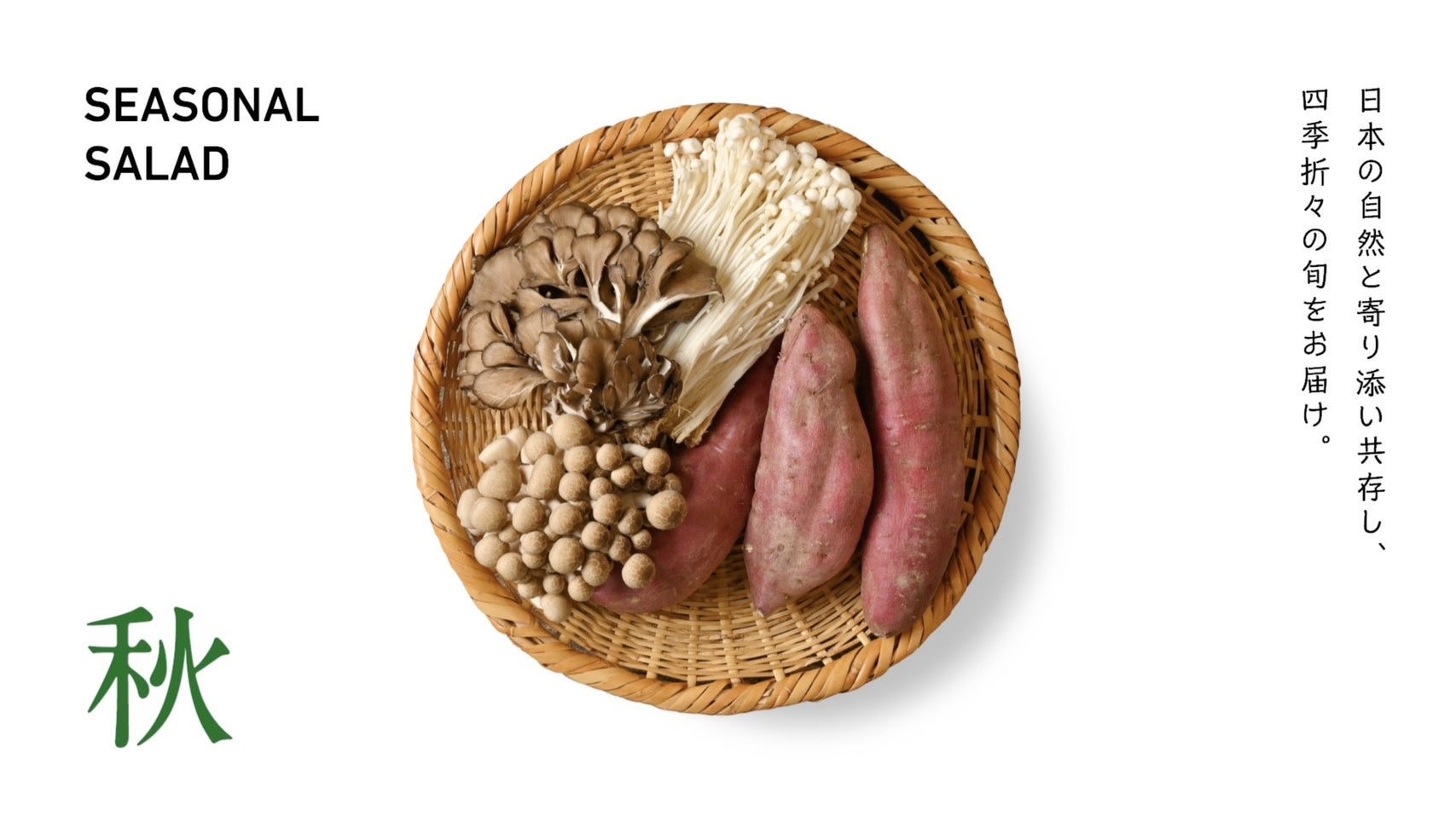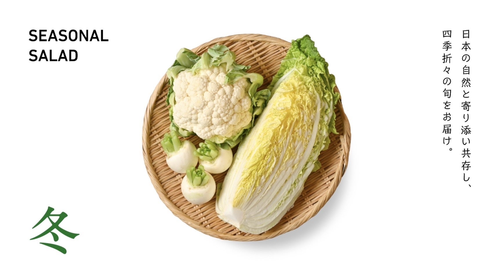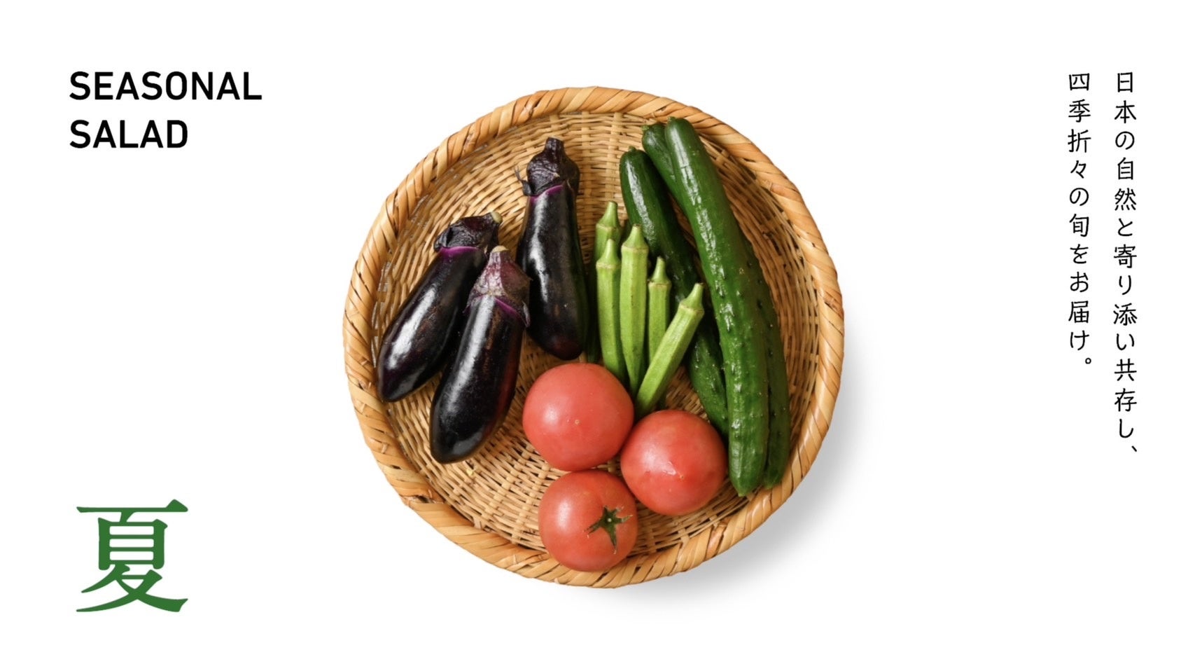 日本には四季があり、それぞれの季節に栄養価が高く美味しい“旬”の野菜があります。私たちは「季節限定サラダ」の生みの親として、日本の生産者の方々と協力しながら季節の野菜を厳選し、2か月毎にお客さまにお届けしています。日本にある豊かな四季と食材を、サラダボウルを通して楽しんでいただきたいと考えております。