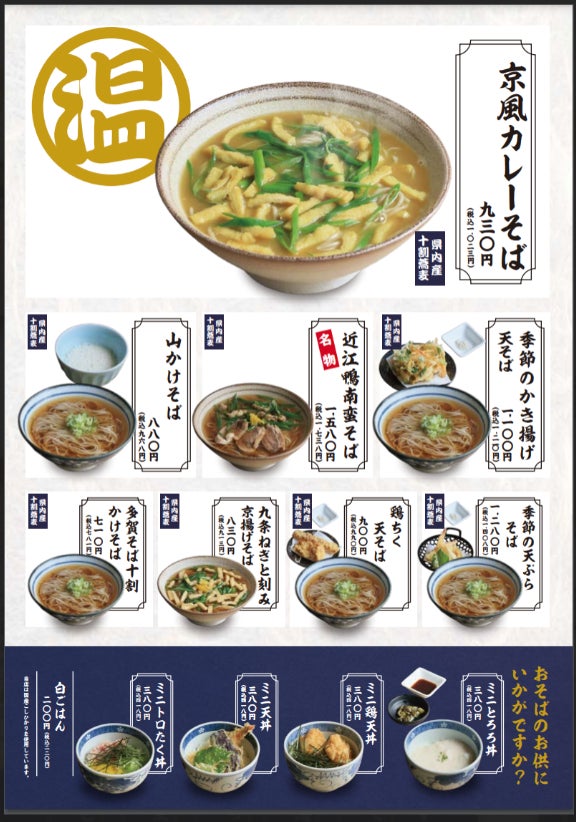 【近江そば 金亀庵】10月3日から全店メニューリニューアル!