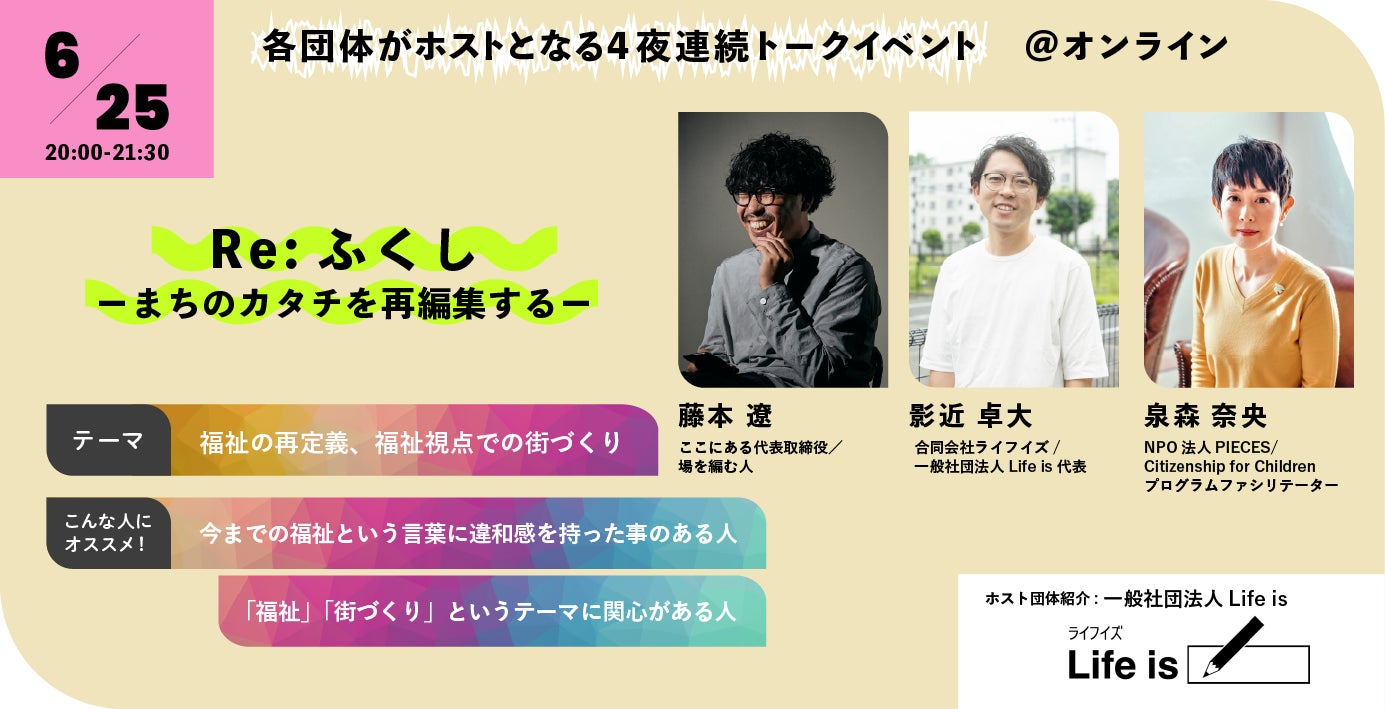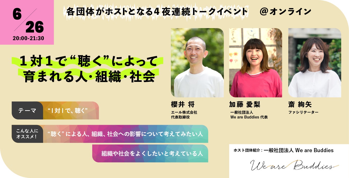 6月24日(火)~27日(金)各団体がホストとなる4夜連続トークイベント@オンライン