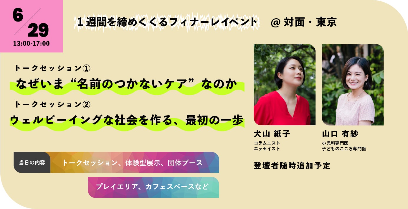 6月23日から1週間にわたり、福祉や医療、街づくり等の専門家とともに、”名前のつかないケア”をテーマにしたオンラインや対面イベントを開催します。本日より参加申込を開始。(参加費無料)