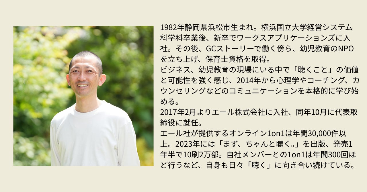 1対1で、ただ「聴く」。それは特別なスキルではなく、そばにいること、関わり続けること。今回のトークでは、聴くことを通して育まれる人や関係性の可能性を見つめます。小さなまなざしが、組織や社会のあり方をゆるやかに変えていくかもしれません。