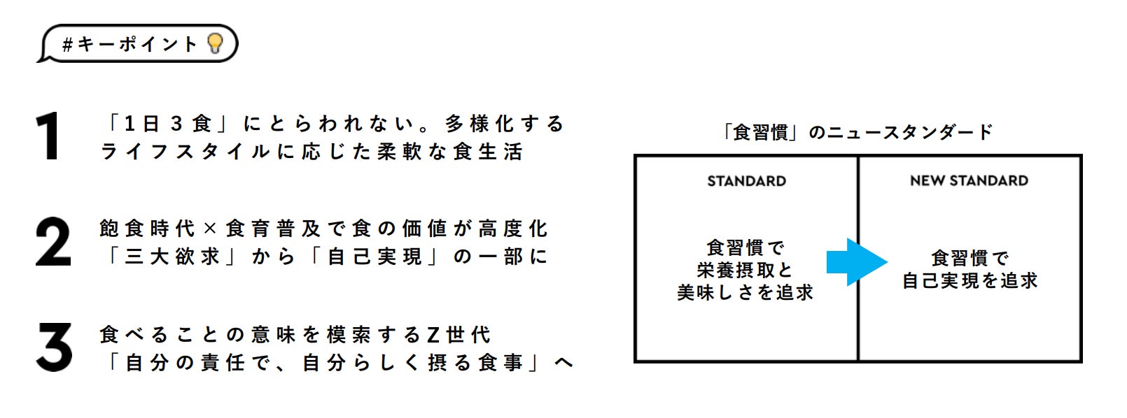 以上のような調査から、NEW STANDARD THINK TANKでは「食習慣のニュースタンダード」を以下のようにまとめました。