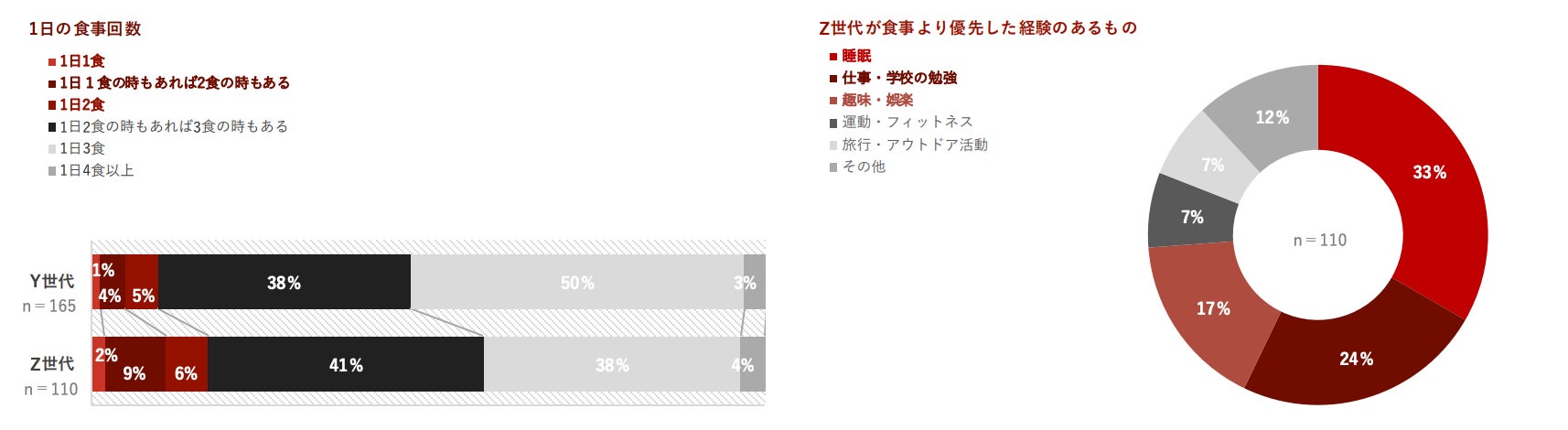 「1日3食以下」の割合がミレニアルズ48%からZ世代58%と増加