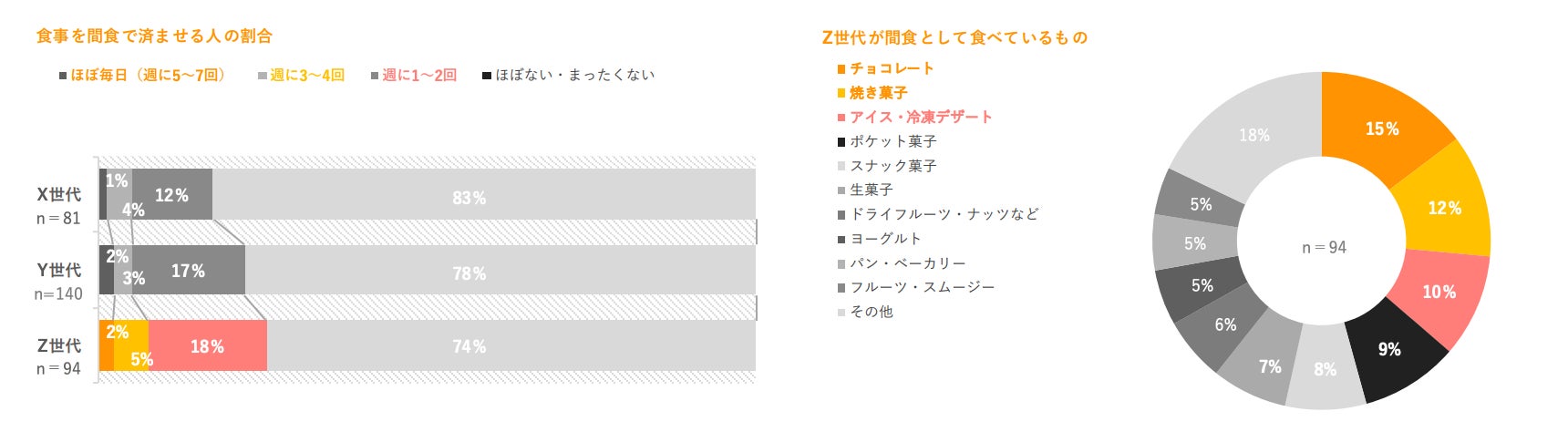 ・Z世代の25%は週に1〜2回以上「食事を間食で済ませている」