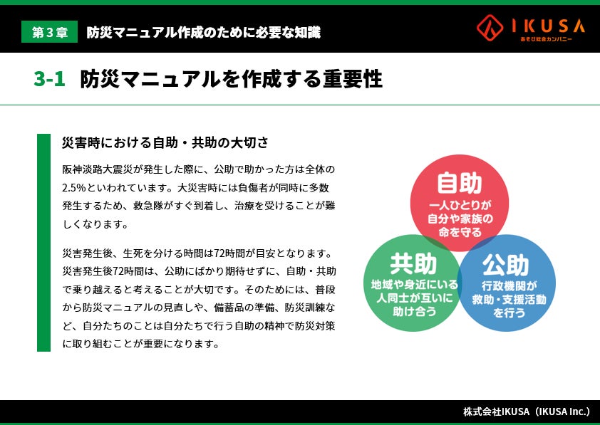 あそびで社会課題の解決を図る株式会社IKUSA(本社:東京都豊島区、代表取締役:赤坂大樹、以下IKUSA)は、「担当者必見 企業向け防災完全ガイド」のホワイトペーパーを公開しました。
