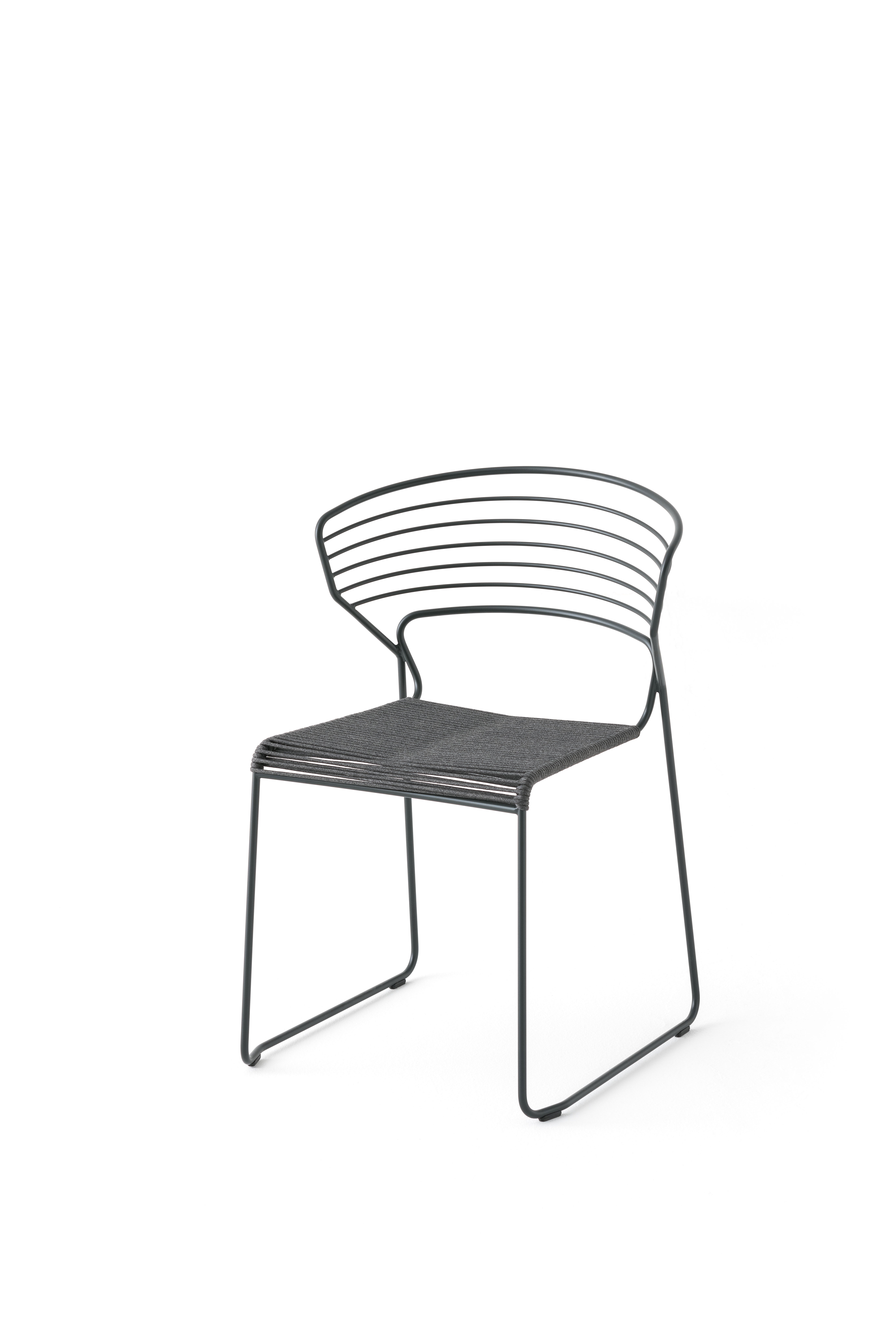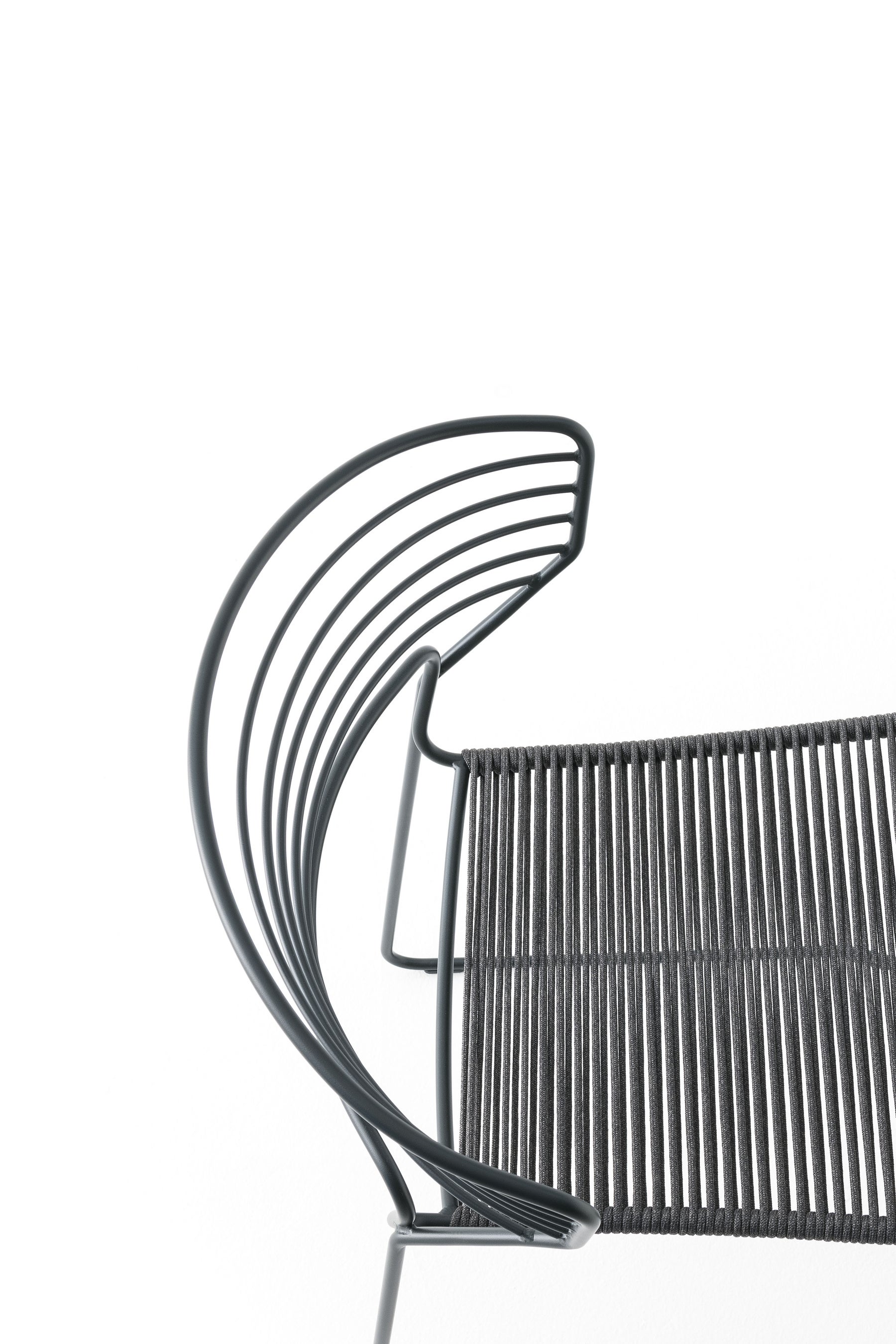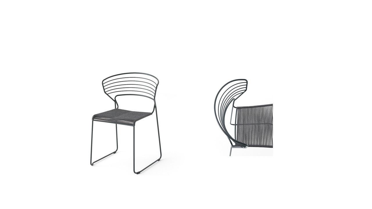 手作業で編まれたロープ編み仕上げのシートが特徴的なチェアは、メタル構造とのコントラストがその個性を際立たせます。軽量で、シンプルで、多目的に使用でき、屋内外問わず、プライベート、パブリック、双方の空間に調和します。