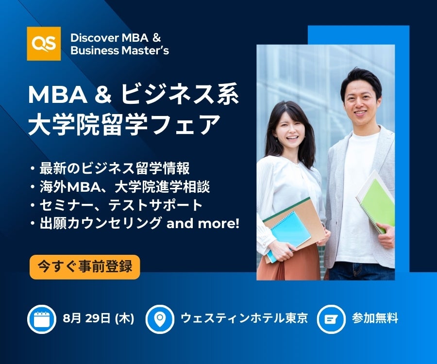 そこで、QSが8月29日(木)に開催する「MBA & ビジネス系大学院留学フェア~QS Discover MBA & Business Master's in Tokyo~」であなたの悩みを解決!