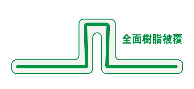 樹脂コーティングに使用しているポリエチレンは高いボンドブレイク性能を発揮。樹脂によるコーティングで三面接着を防ぎ、高い耐食性・防露性も実現しました。防腐防蟻処理材の影響も受けにくい製品です。