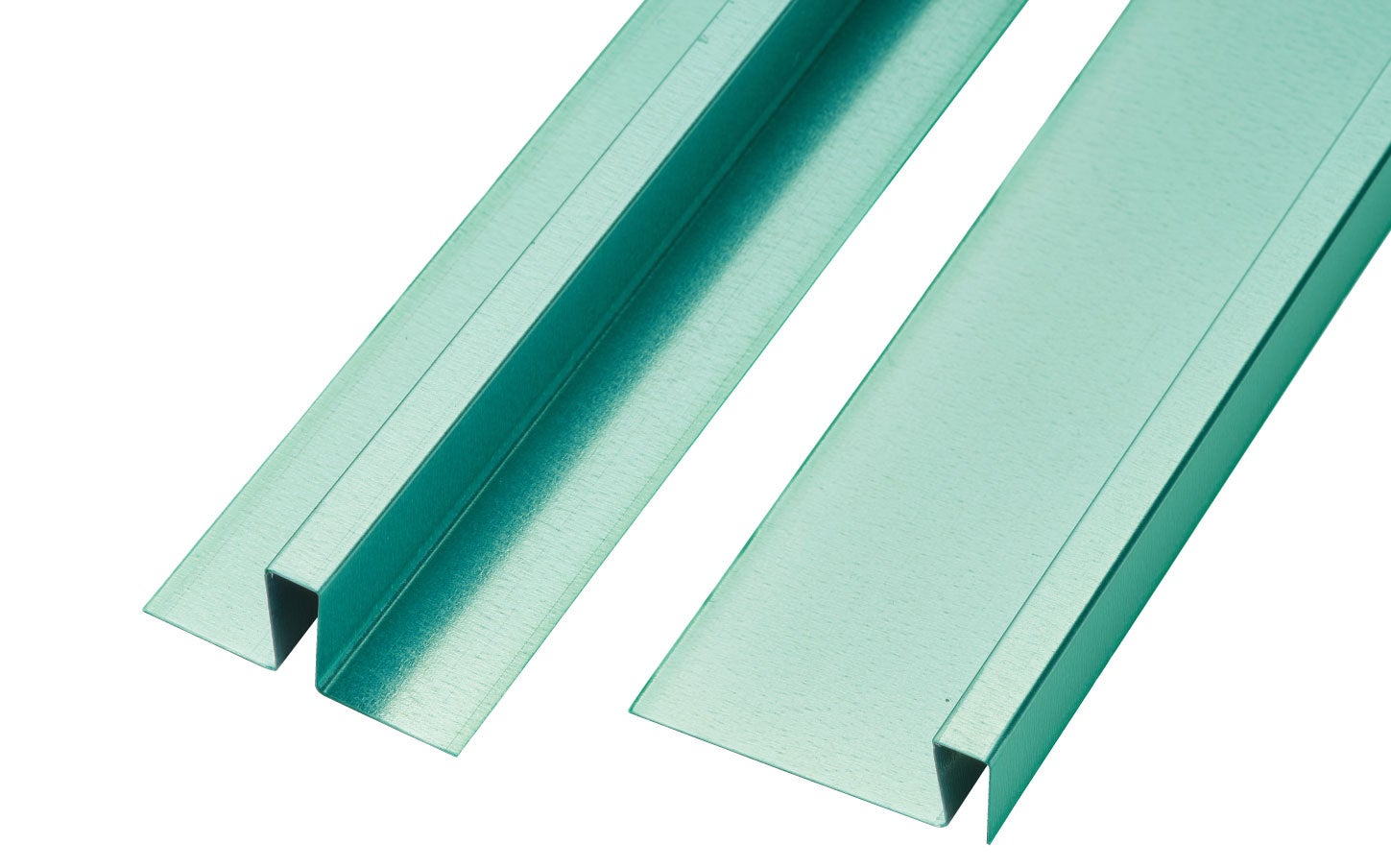 鋼板の厚みは発売当初の0.35mmから、現在は0.16mmに。非常に薄くて軽いので、現場での扱いやすさは抜群です。ロール成形機による一体成型により、ハット端部にも樹脂コーティングを施しているため、現場で手を切る心配がありません。
