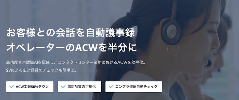 - 概要:音声リアルタイム書き起こしや、応対品質の可視化、コンプライアンスチェック等を通じ、AIがオペレーターの業務高度化をサポート