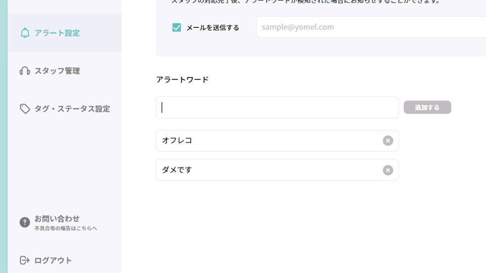 不適切な発話をリアルタイムで検知し、マネージャーに通知を即時送付するアラート機能