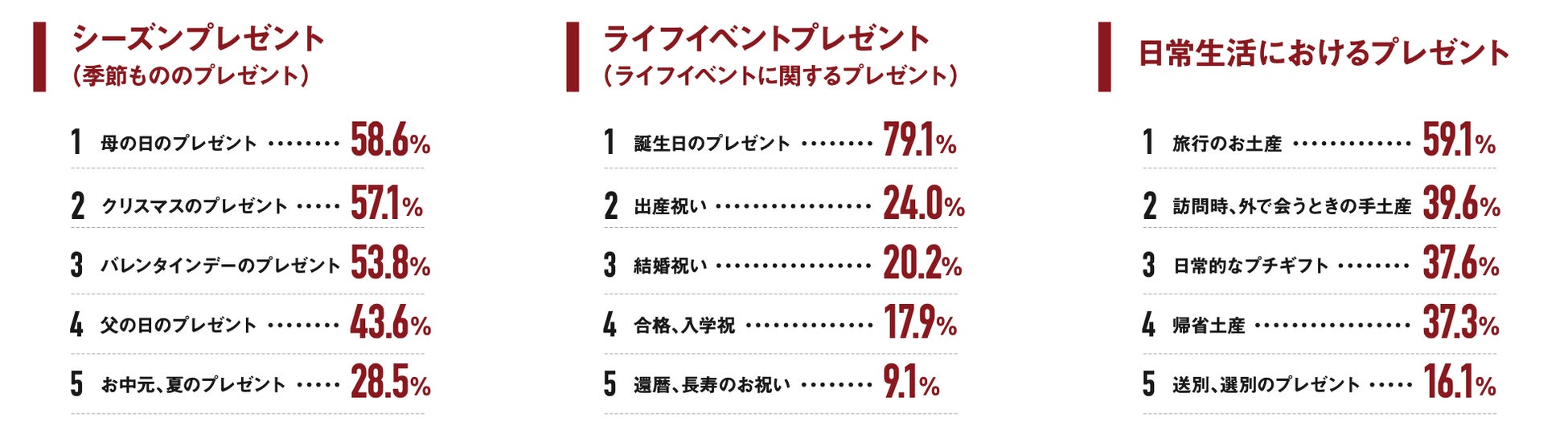 Q.直近一年に、どのようなときにプレゼント・贈り物をしましたか。当てはまるものを全て教えてください。