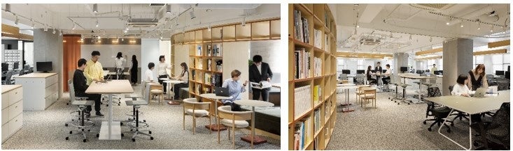 リニューアルにより、これまで3フロアに分かれていたオフィスを2フロアに集約しました。1階オフィスはそのままに、2階オフィスの改修をおこなっています。現ビルへの移転当時より従業員数は増加しているものの、出社率を考慮しオフィス機能を2フロアに集約することで、チームワークを強化できるオフィス環境を整備し、働き方の最適化を図りました。リモートワークとサテライトオフィスの活用も継続し、従業員が自律的に働き方を選択することで、ワーク・ライフ・バランスと生産性の向上を目指しています。