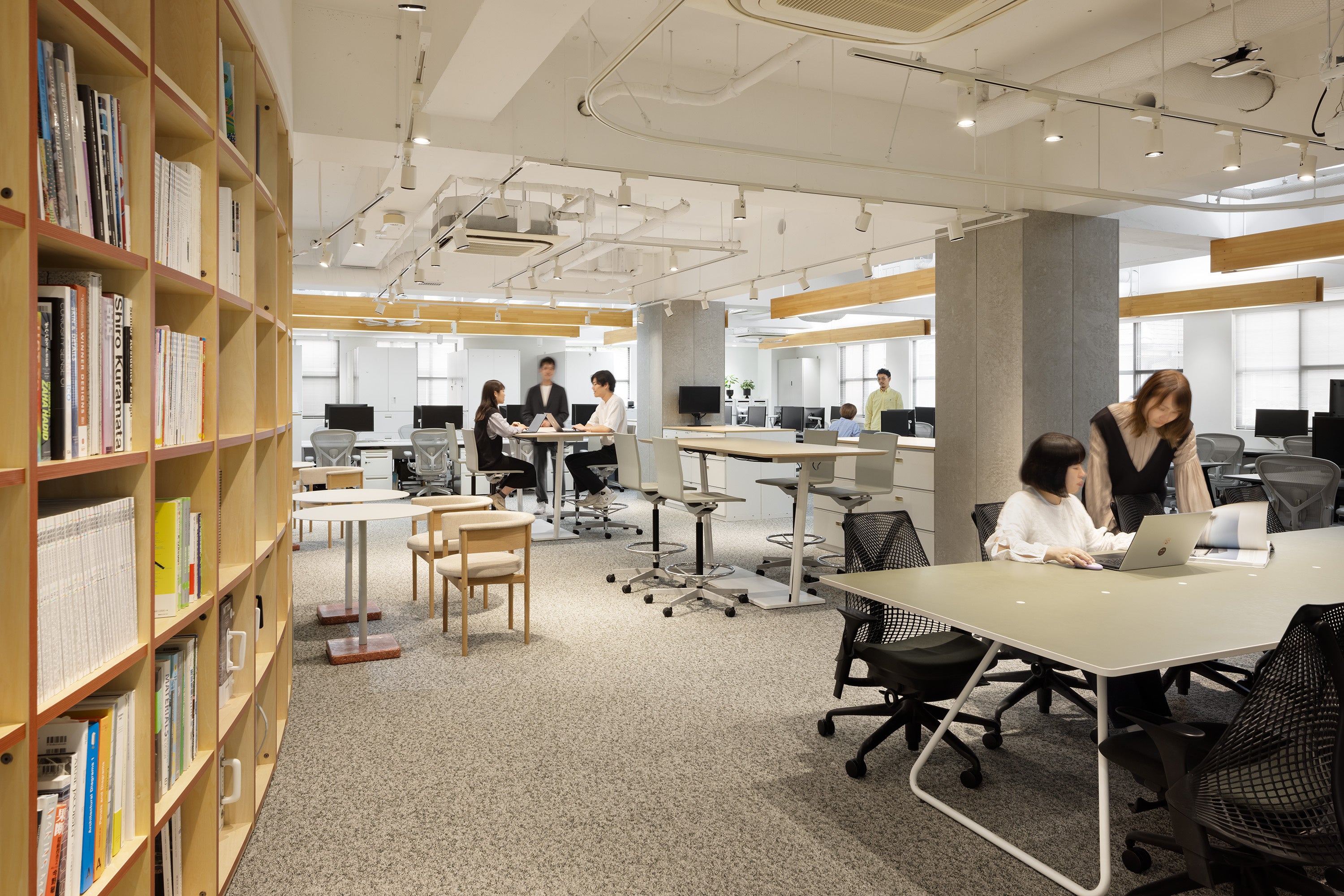 新たにリニューアルされた2階オフィスは、フロアを行きかう従業員同士が自然に会話を交わし、チームでの仕事が気兼ねなくできるような開放感のある設計となっています。リモートワークやサテライトオフィスを活用しながらも、オフィスは誰かと一緒に働くことで、人から受ける刺激を楽しむことができる場所としました。