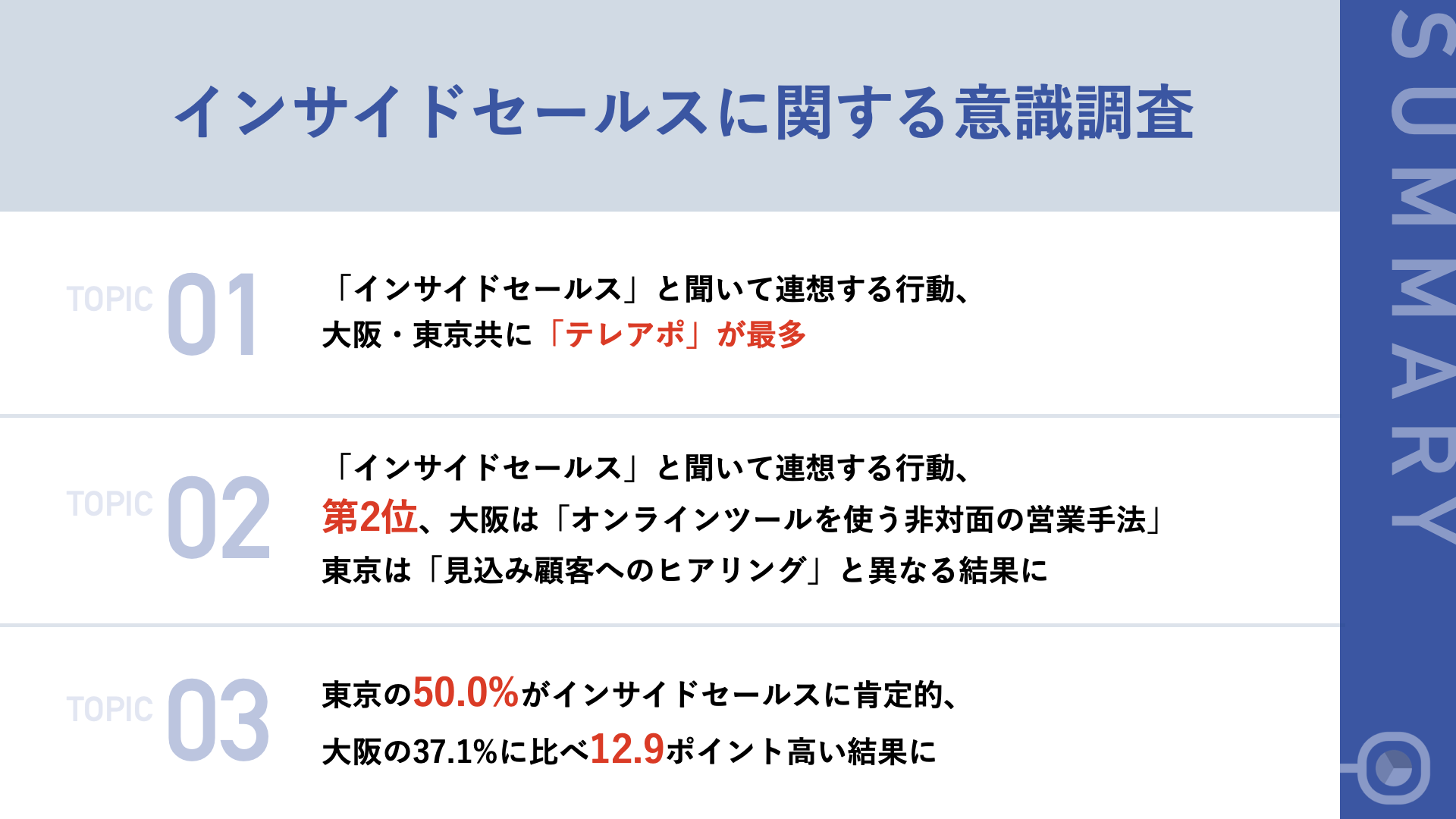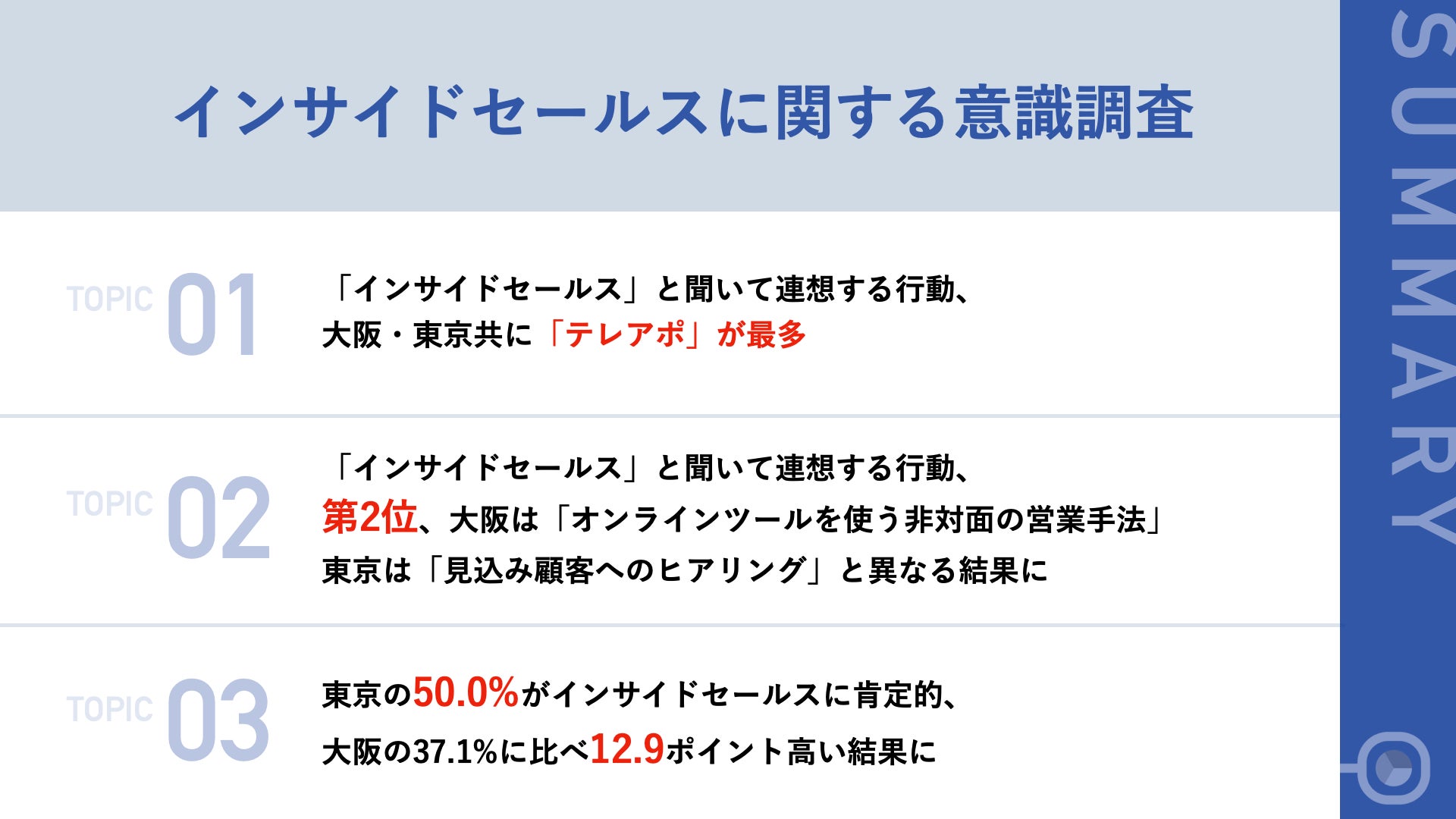 東京の50.0%がインサイドセールスに肯定的、大阪に比べ12.9ポイント高い結果に