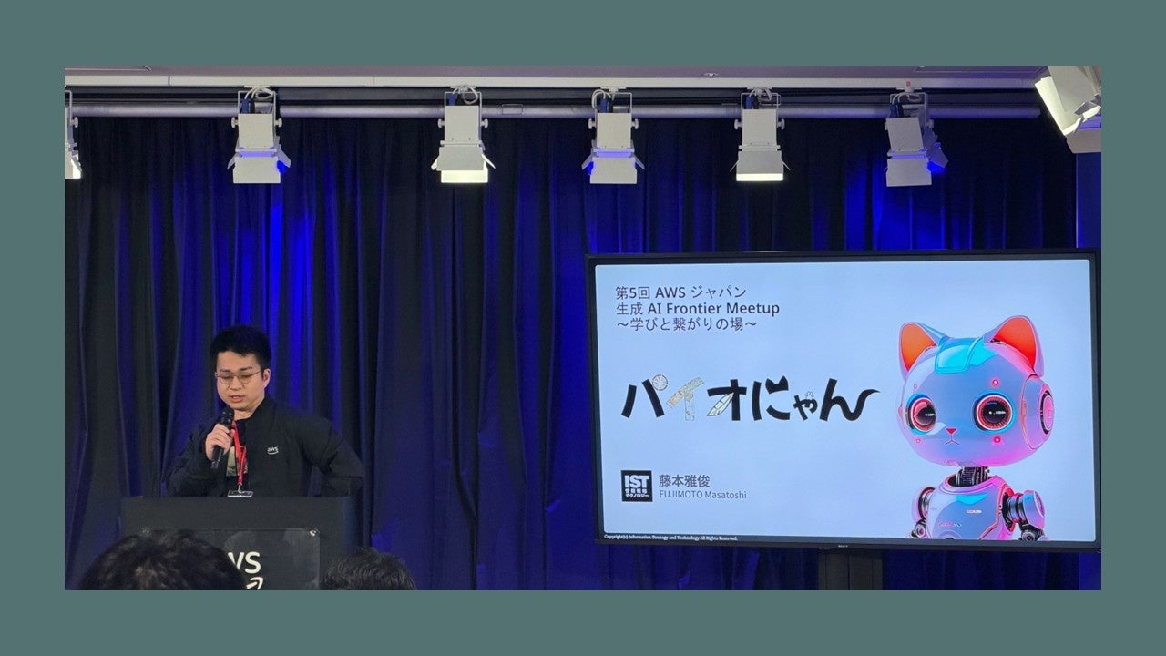 株式会社情報戦略テクノロジー(東京都渋谷区、代表取締役社長 髙井淳、以下「当社」)は、2025年11月17日(月)に開催されたアマゾン ウェブ サービス(以下、AWS)ジャパン主催のイベント「第5回 AWS ジャパン 生成 AI Frontier Meetup ~学びと繋がりの場~」において、当社 AI Officer 藤本 雅俊が登壇したことをお知らせいたします。