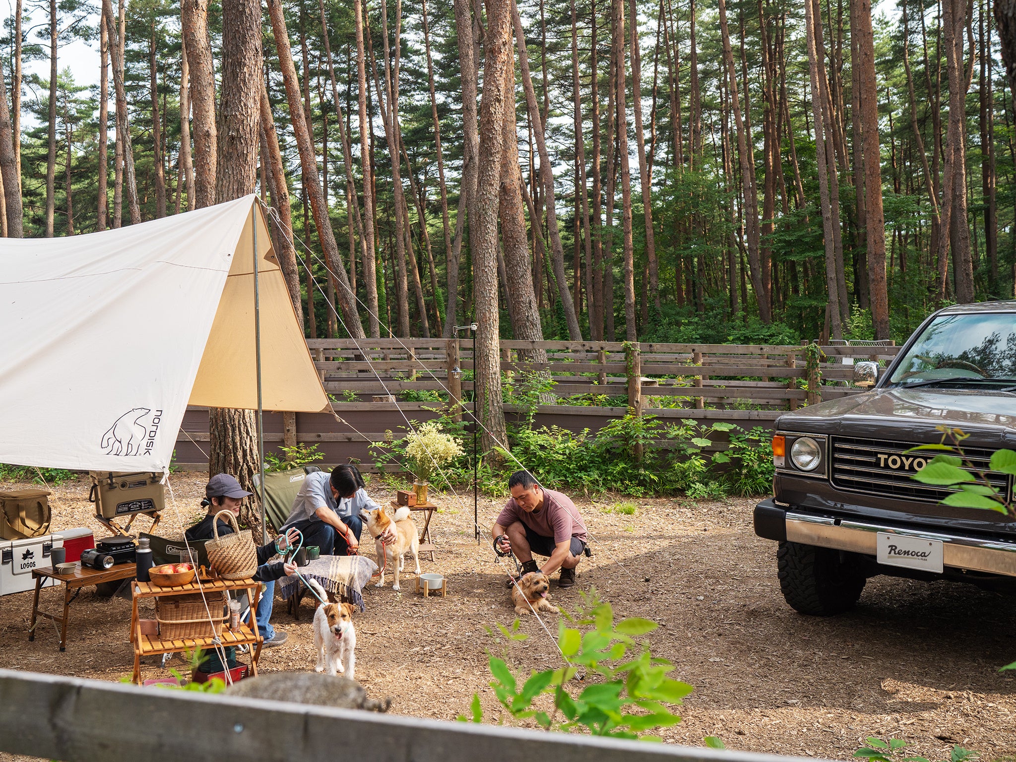 当社が自信をもってご提案できる理由は、施設のクオリティにあります。2022年10月にオープンした「FOLKWOOD VILLAGE 八ヶ岳 FLEX FIELD」は、ウォシュレット完備の清潔なトイレ・シャワー、野田クラクションベベーさん監修の本格フィンランド式薪火サウナ、「bills」などを展開するトランジットジェネラルオフィスが運営するカフェを有する高規格施設です。愛犬との滞在を歓迎するドッグフレンドリーな設計で、サイト内には柵付きドッグランも。ワンちゃん向けのカフェメニューも充実しています。都心からは車で2時間弱、中央道・小淵沢ICから5分とアクセスも良好です。