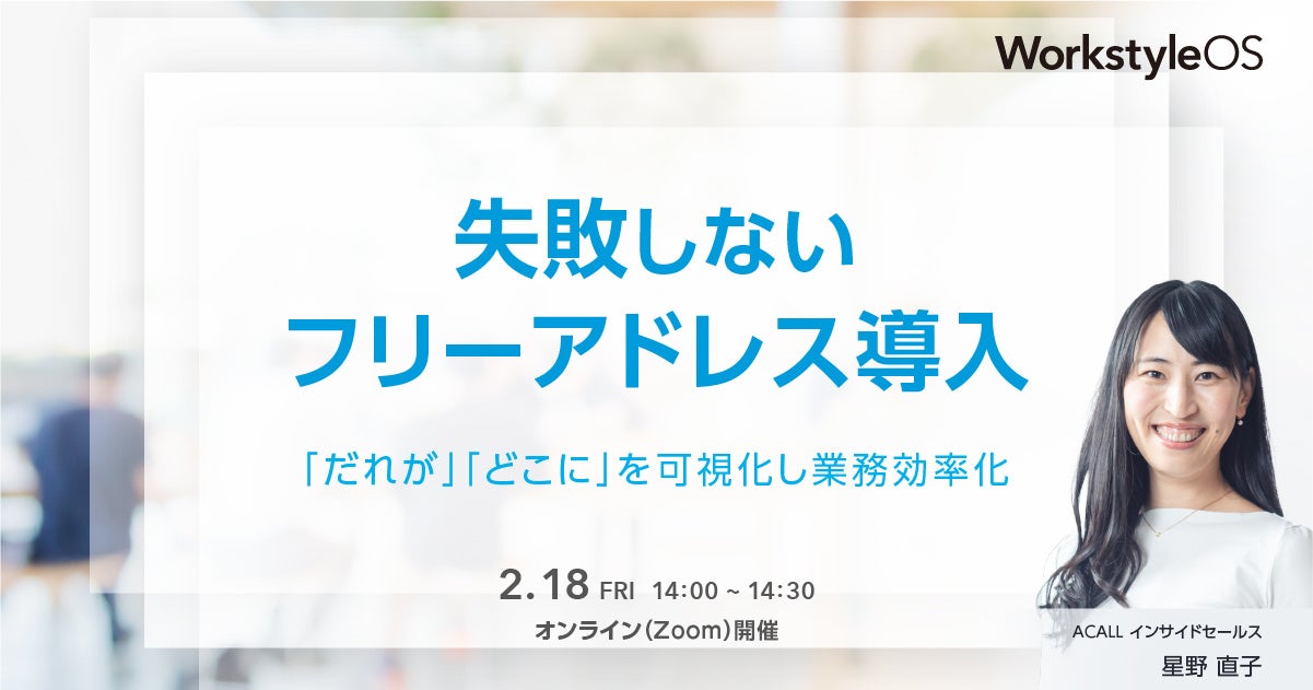 ”働きやすさ、を実装する。WorkstyleOS(ワークスタイルオーエス)”を提供しているACALL株式会社は、「失敗しないフリーアドレス導入」と題しフリーアドレス導入時に陥りやすい課題やその解決法をご紹介するウェビナーを開催いたします。