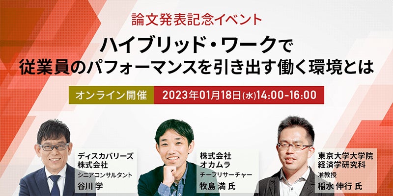 東京大学大学院×株式会社オカムラ×ディスカバリーズ株式会社 ハイブリッド・ワークにおけるクリエイティビティと時間・場所に関する研究論文の発表記念オンラインイベントを2023年1月に開催。