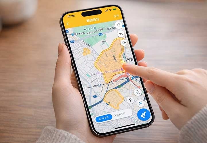 従来の円形や多角形によるエリア設定に加え、指で画面をなぞることでエリアを設定できる「ゆびでなぞって設定」モードを新たに搭載しました。