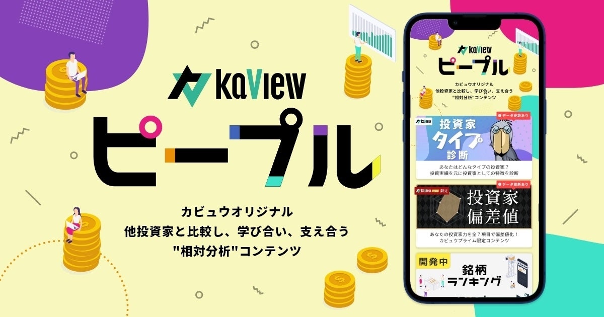 株式会社テコテック(本社:東京都港区、代表取締役社長:釣崎宏)は、株式投資 管理・分析アプリ『カビュウ』が2022年3月22日より、新たな“相対分析”コンテンツカテゴリ「ピープル」を追加し、第一弾コンテンツとして「投資家偏差値」と「投資家タイプ診断」をリリースしたことをお知らせいたします。