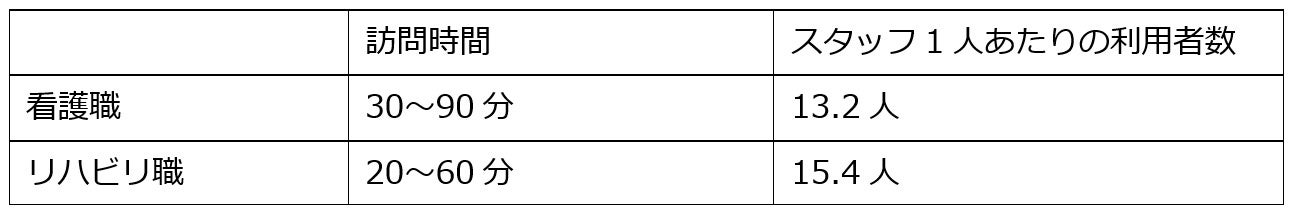 看護職とリハビリ職の訪問時間と、スタッフ1人あたりの利用者数の比較(※1)