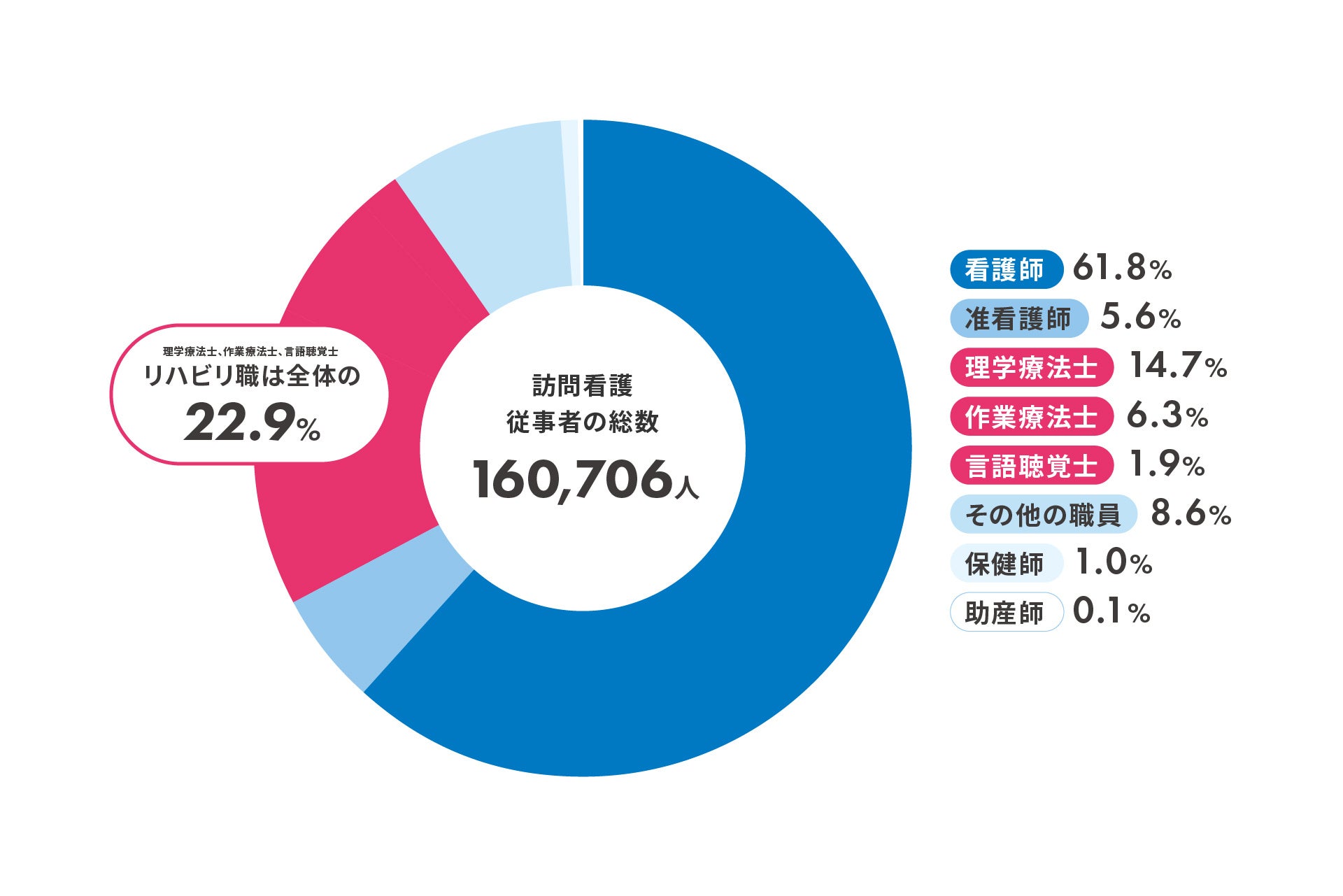 全国には訪問看護ステーションのリハビリ職(理学療法士、作業療法士、言語聴覚士)が約3万6千人いて、訪問看護従事者の22.9%を占めています。(※2)