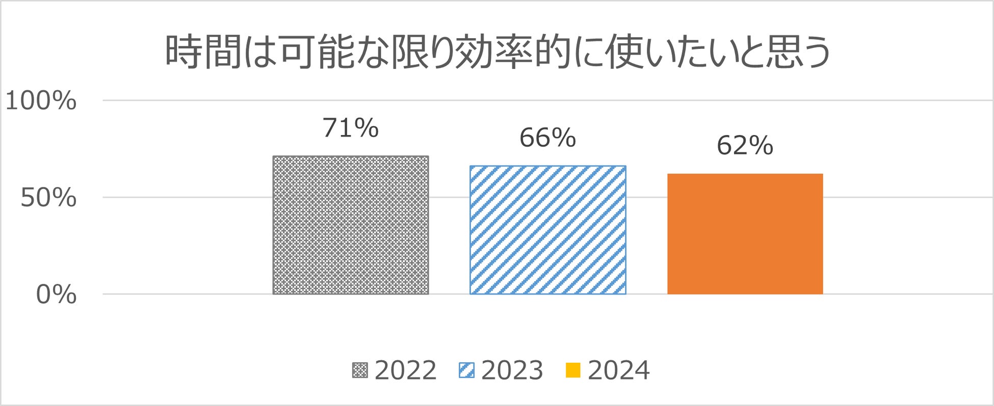 <グラフ5> 意識:「時間は可能な限り効率的に使いたいと思う」(ベース:男女15-74歳全体 n=2,400ss (2022-2024))