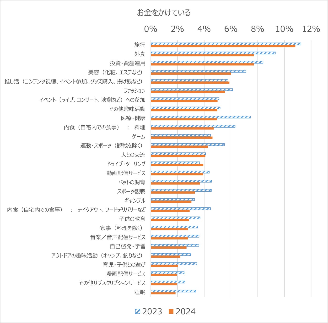 <グラフ3> お金をかけている行動(ベース:男女15-74歳全体 n=2,400ss (2023,2024))