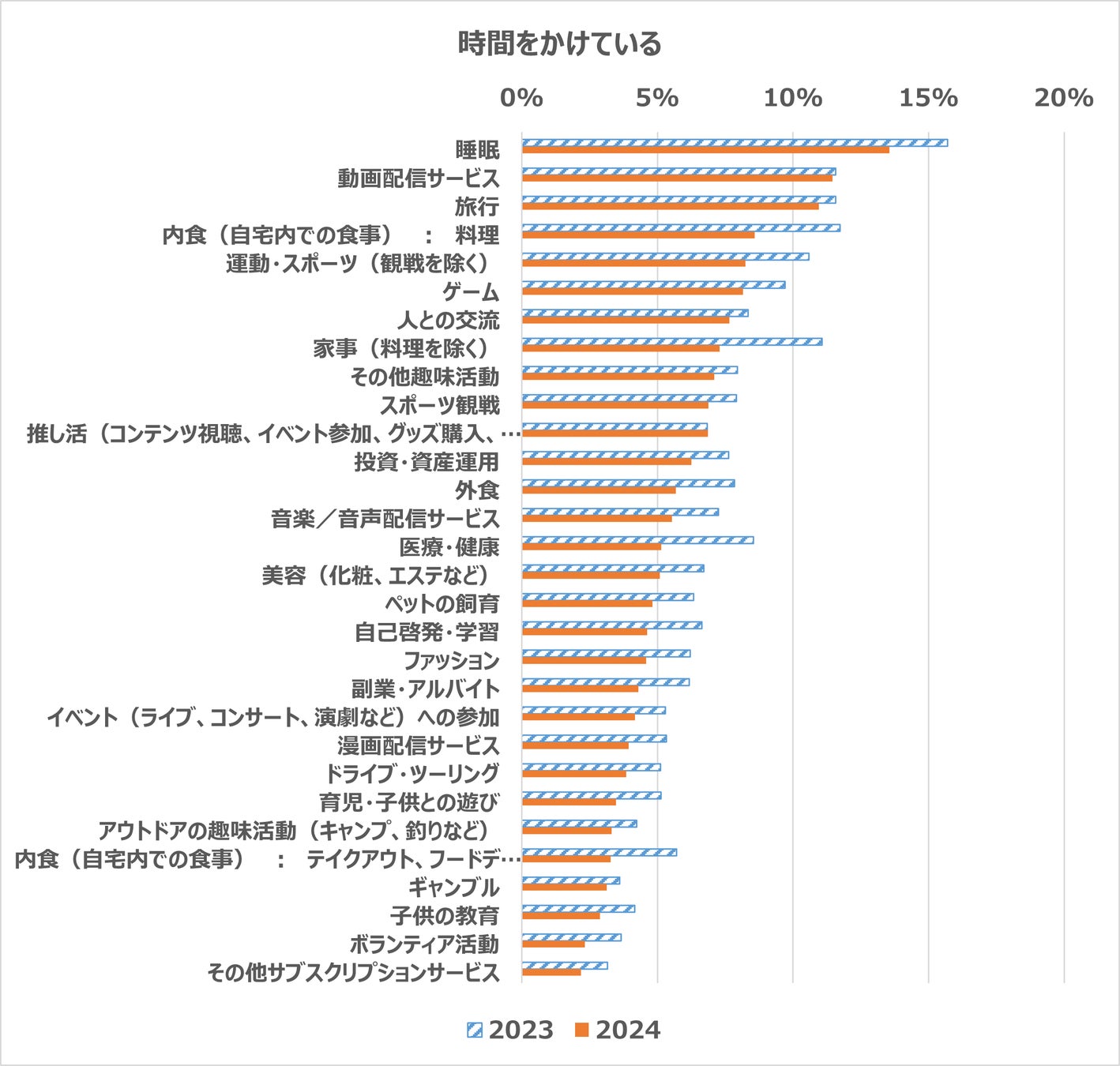 <グラフ2> 時間をかけている行動(ベース:男女15-74歳全体 n=2,400ss (2023,2024))