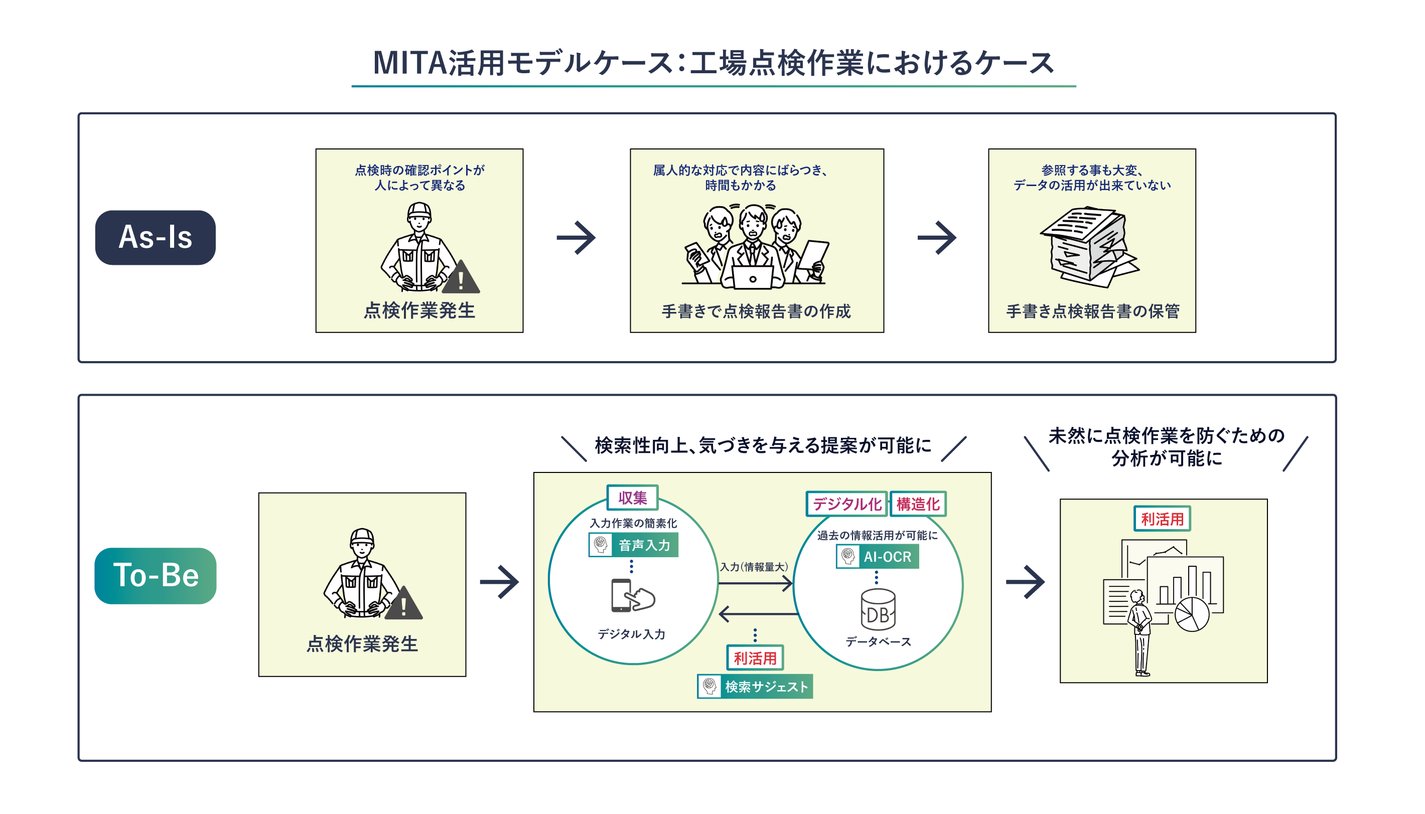 不確実性の時代、国内製造業界にとって、個社毎に新たな競争優位性をいかに獲得するか、目下の課題のひとつといえます。こうした中で、これまで蓄積した「技術情報」を「資産化(活用し、必要なものを蓄積する)」することができれば、企業の魅力を社内で再確認できると共に、ナレッジの共有による技能伝承や業務の見直し、また現行サービスとのシナジーが生まれやすい開発を推進することが可能です。「技術情報」を可視化し、活用して蓄積し、価値を最大化するために DX(Digital Transformation)は有益であり、シナモン AI は DX推進を加速させる MITA ソリューションで製造業界を支援していきます。