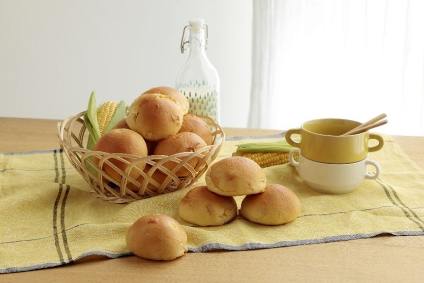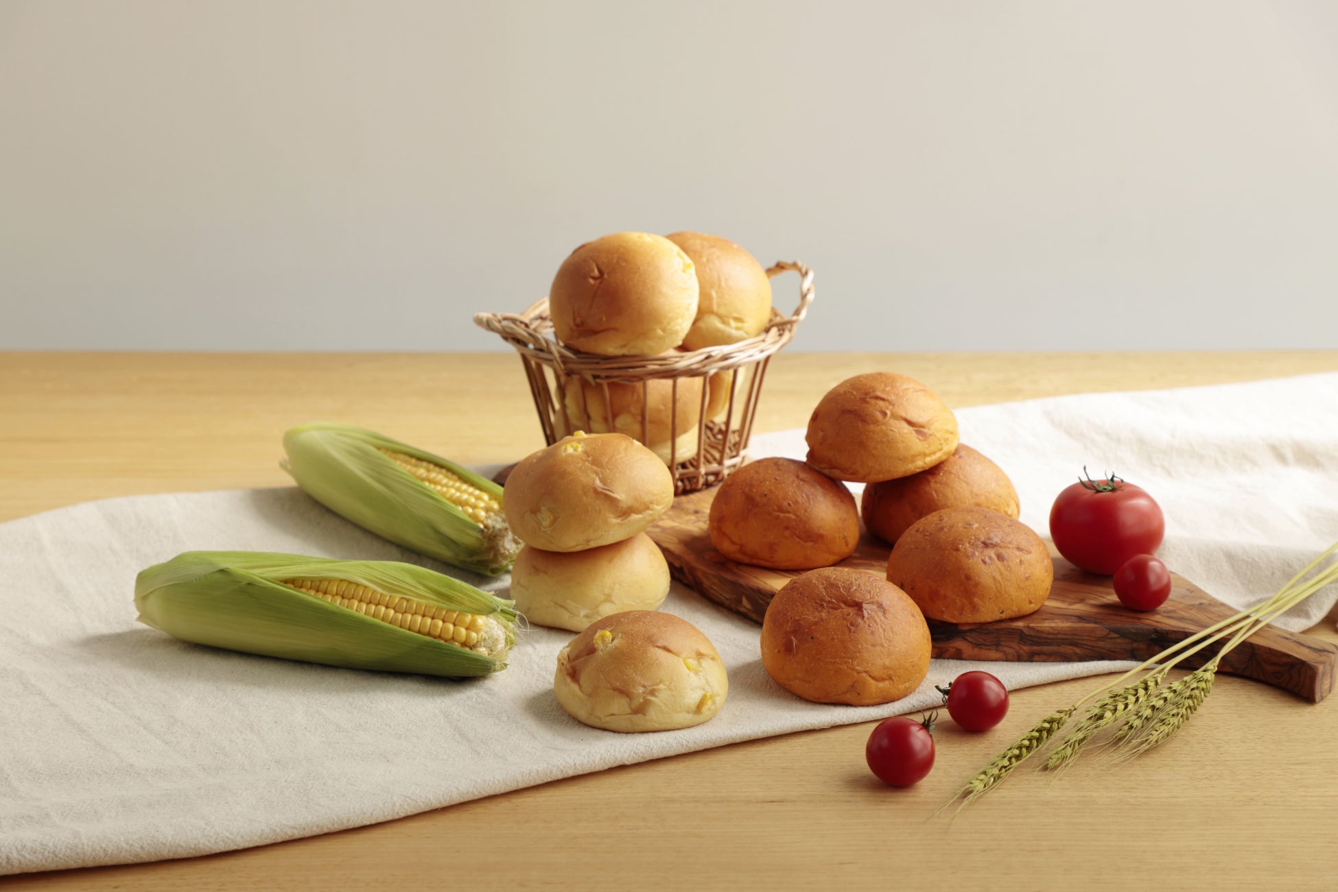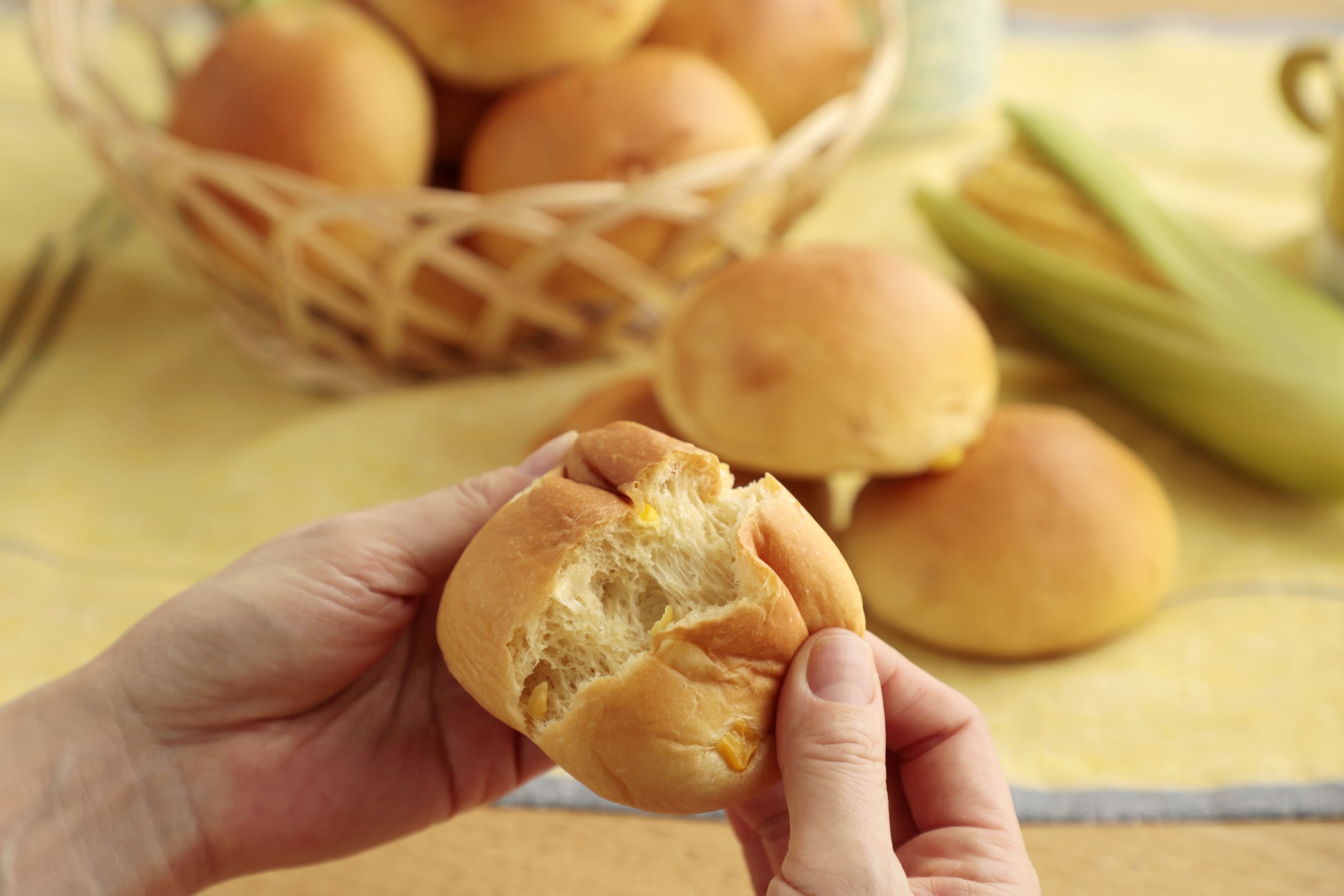 スイートコーンの味わいを活かしたほんのり甘めの生地に、しゃきしゃきの粒コーンをたっぷりと練り込んだコーン満載のパン。子供から大人まで家族みんなが食べやすい優しい味わいに仕上げました。ほんのりとした甘みは素材の味を邪魔せず、惣菜系、スイーツ系のどちらにアレンジしてもよく合います。