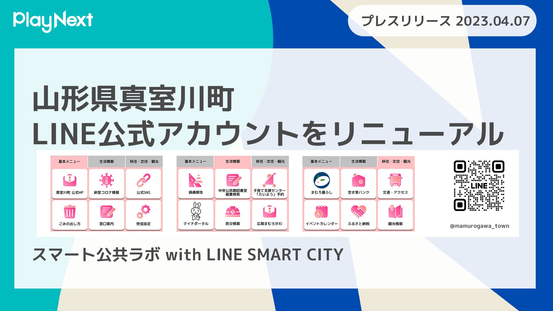 プレイネクストラボ株式会社(本社:東京都品川区、代表取締役:柏 匠、以下 プレイネクストラボ)は「スマート公共ラボ with LINE SMART CITY GovTechプログラム」を活用し、山形県真室川町(以下、真室川町)のLINE公式アカウントのリニューアル公開を4月3日(月)に実施いたしました。