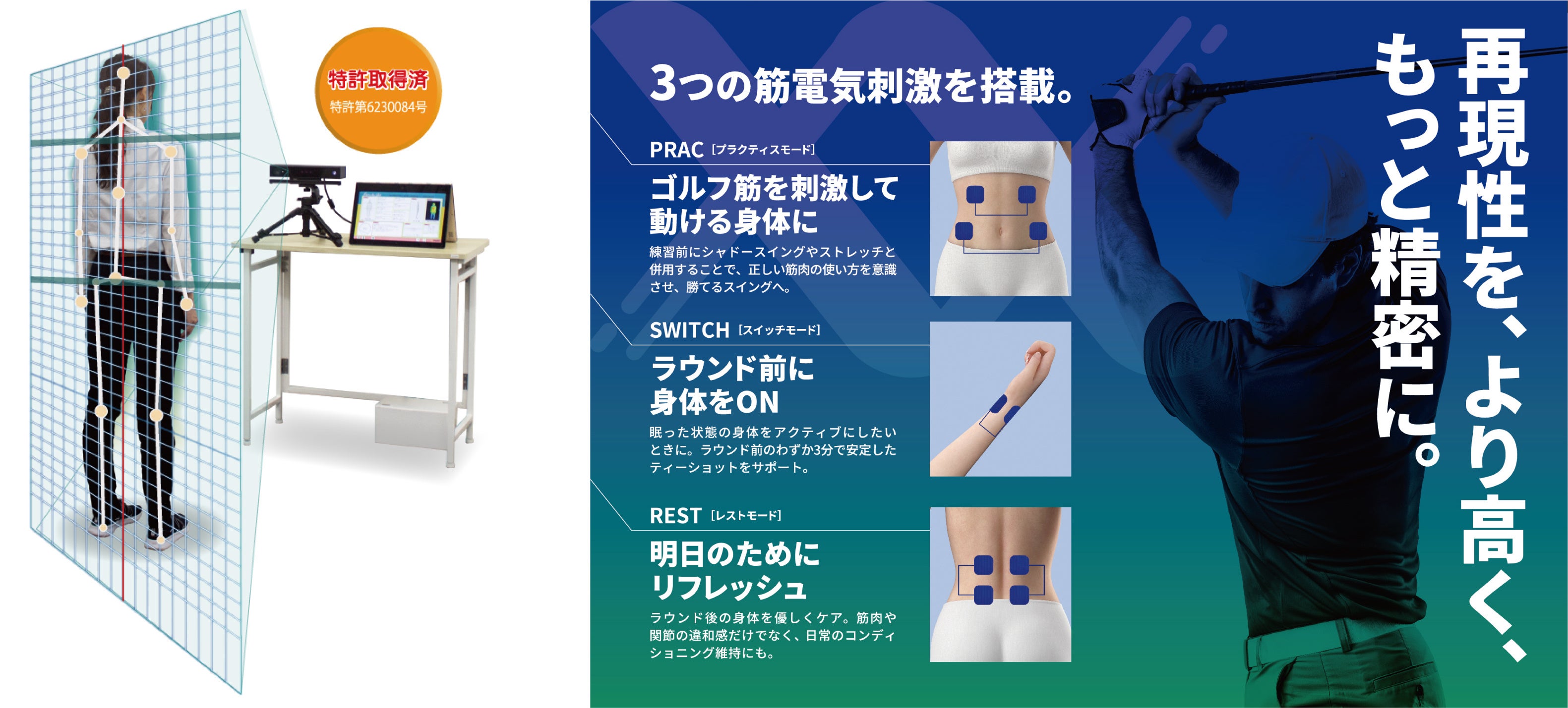 体幹部の筋肉はゴルフに重要と言われていますが、体幹筋がしっかりと働いていない方はカラダに歪みやねじれが生じています(猫背、反り腰などetc)。ブースでは姿勢分析ツール「アーティキュラーショット」によってあなたの姿勢を3秒でチェック。