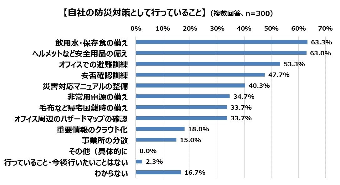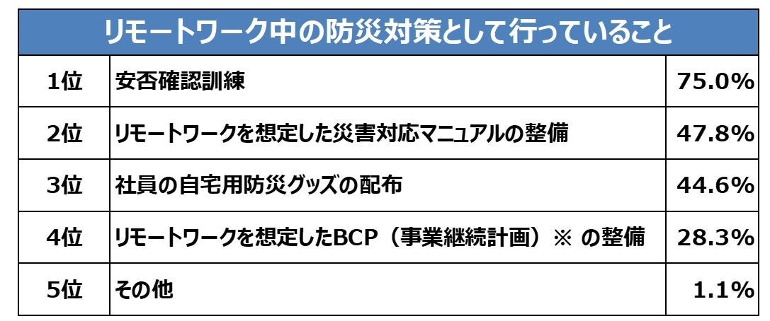 ~企業の防災対策に関する調査~ リモートワーク中の防災対策 実施率3割にとどまる