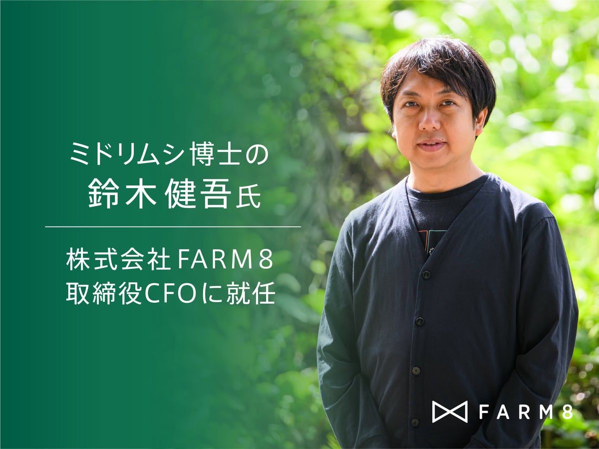 株式会社FARM8(本社:新潟県長岡市、代表取締役:樺沢敦)は、2023年12月1日より、株式会社ユーグレナ社の創業メンバーの一人であり微細藻類ユーグレナ(ミドリムシ)や麹菌などを始めとする微生物に関連する研究開発を続けてきた鈴木健吾氏をCFO(最高財務責任者)として迎え入れることをお知らせいたします。