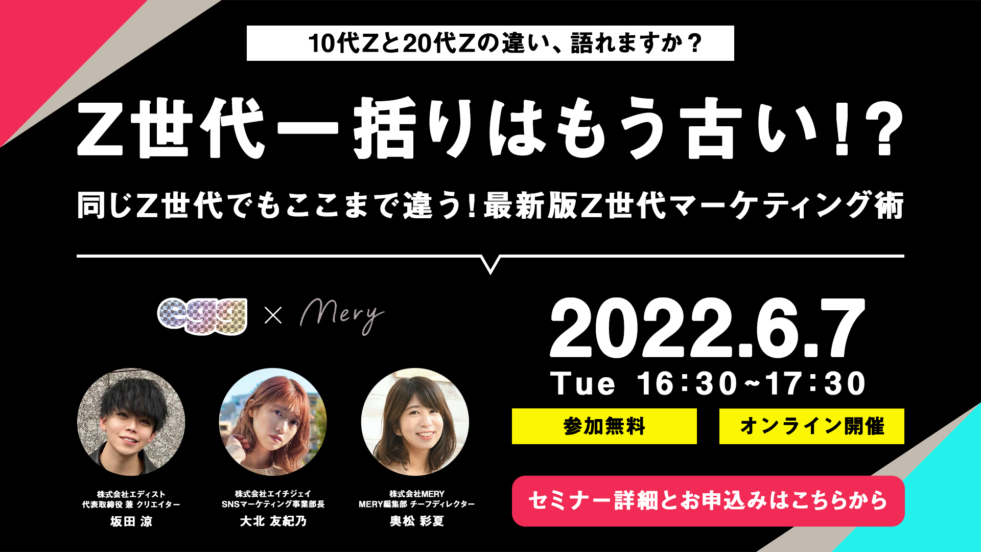 「egg」×「MERY」が初タッグ"Z世代"一括りはもう古い!?マーケター必見!若年層マーケティングのツボ10代・20代のトレンド、SNSの利用傾向、消費動向最前線