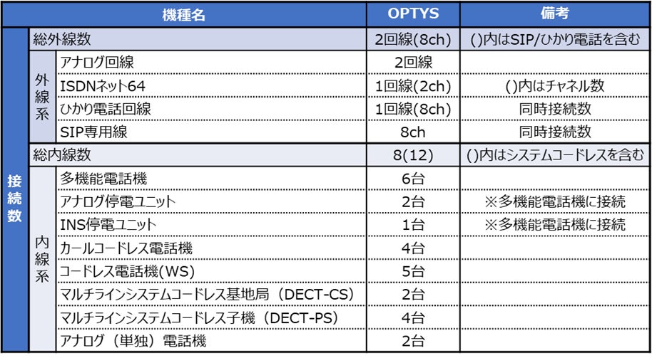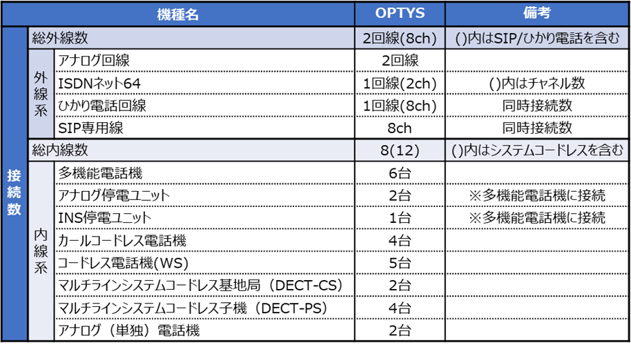 OPTYSは、弊社従来品のActysⅢ(アクティス)でご要望が多かった、ひかり電話機能の拡充や収容できる電話機の追加、構内設備との連携強化なども実現しています。